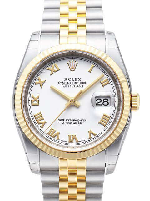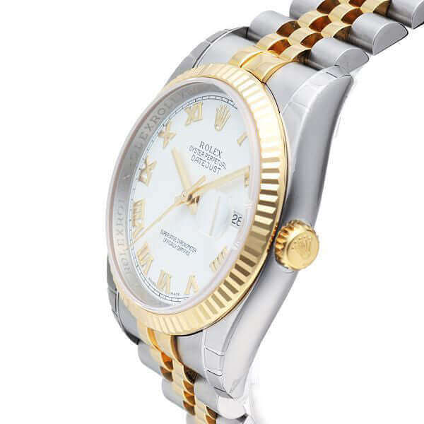 Rolex Datejust 36 mm Stahl/Gelbgold Ref. 116233 Weiß Römisch