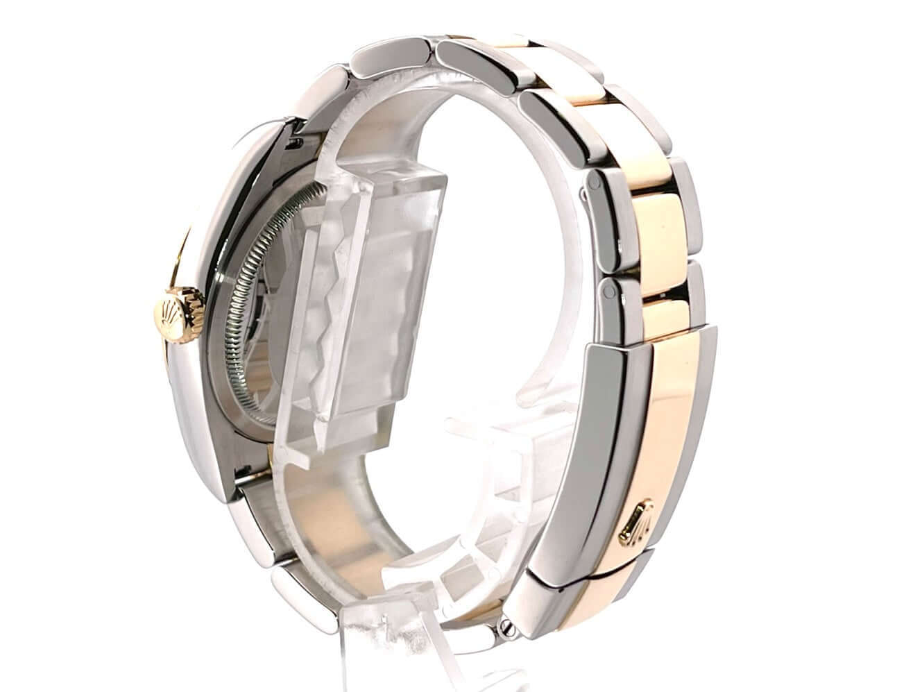 Gehäuse aus Edelstahl / Gelbgold poliert und satiniert, Gehäusedurchmesser 36 mm, glatte 18 kt Gelbgold Lünette, Oyster Armband aus Edelstahl / 18 kt Gelbgold poliert und satiniert mit Faltschließe, silberfarbenes Zifferblatt mit Diamanten in der Römisch VI und IX, Gelbgold Zeiger, Automatikwerk, Rolex Manufakturkaliber 3235 mit 31 Steine, 28.800 A/h, 70 Stunden Gangreserve, Datumsanzeige, Chronometer, kratzfestes Saphirglas, verschraubte 18 kt Gelbgold Krone, Edelstahlboden verschraubt, Wasserdicht bis zu 10 bar.