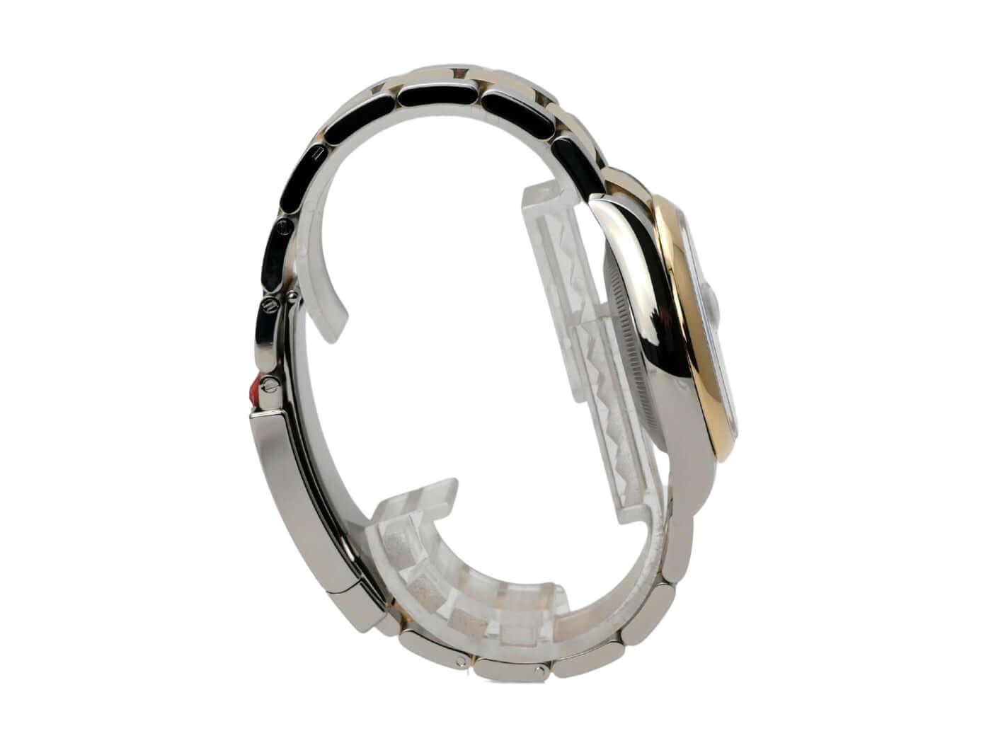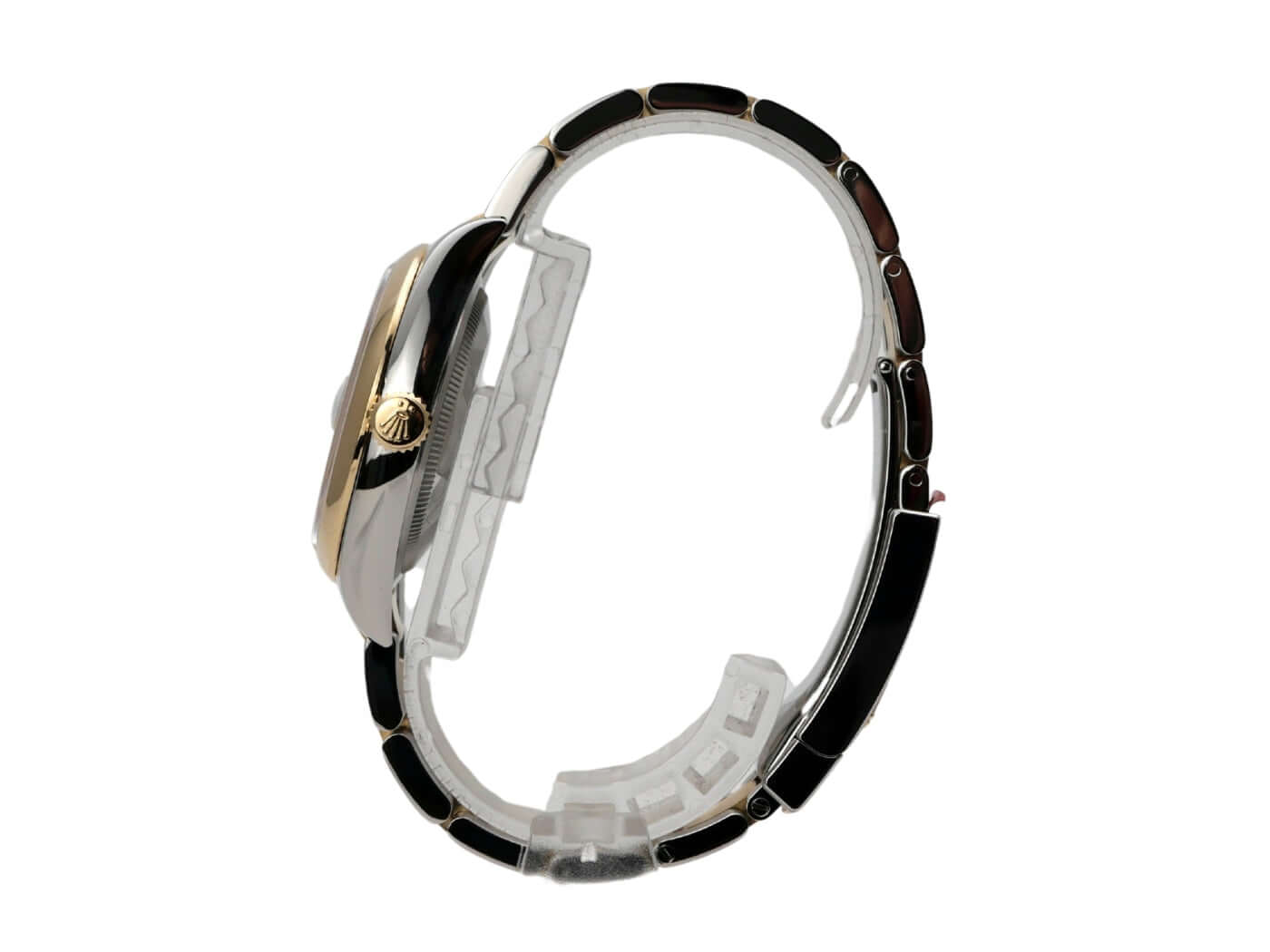 Gehäuse aus Edelstahl / Gelbgold poliert und satiniert, Gehäusedurchmesser 36 mm, polierte 18 kt Gelbgold Lünette, Oyster-Armband aus Edelstahl / 18 kt Gelbgold poliert und satiniert mit Faltschließe, weißes Zifferblatt mit aufgesetzten goldenen römischen Ziffern, goldene Zeiger, Automatikwerk, Rolex Manufakturkaliber 3235 mit 31 Steine, 28.800 A/h, 70 Stunden Gangreserve, Datumsanzeige, Chronometer, kratzfestes Saphirglas, verschraubte 18 kt Gelbgold Krone, Edelstahlboden verschraubt, wasserdicht bis zu 10 bar.