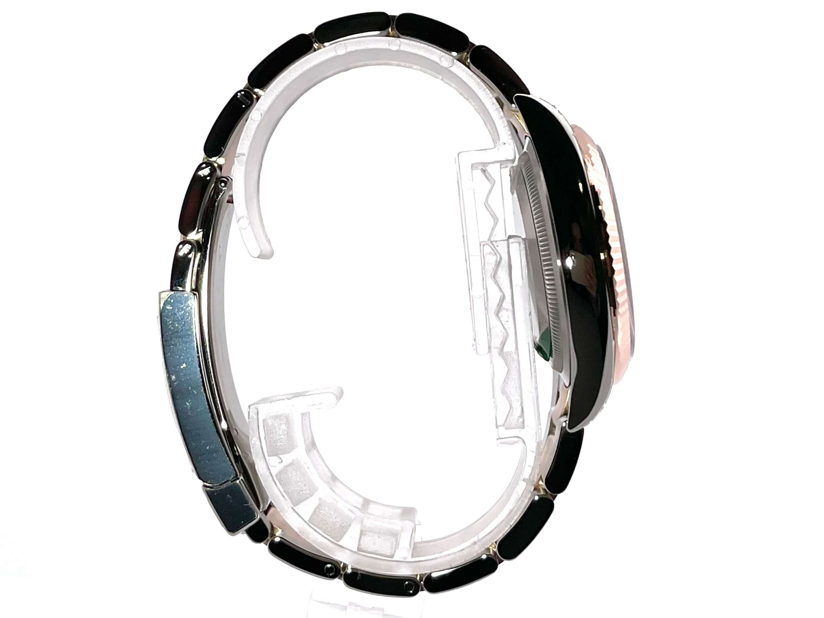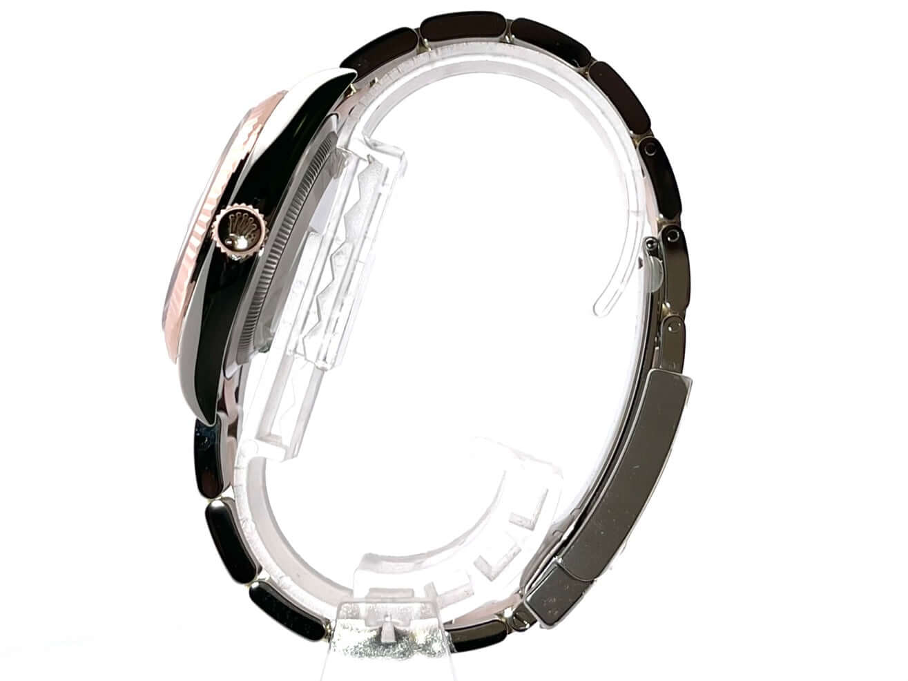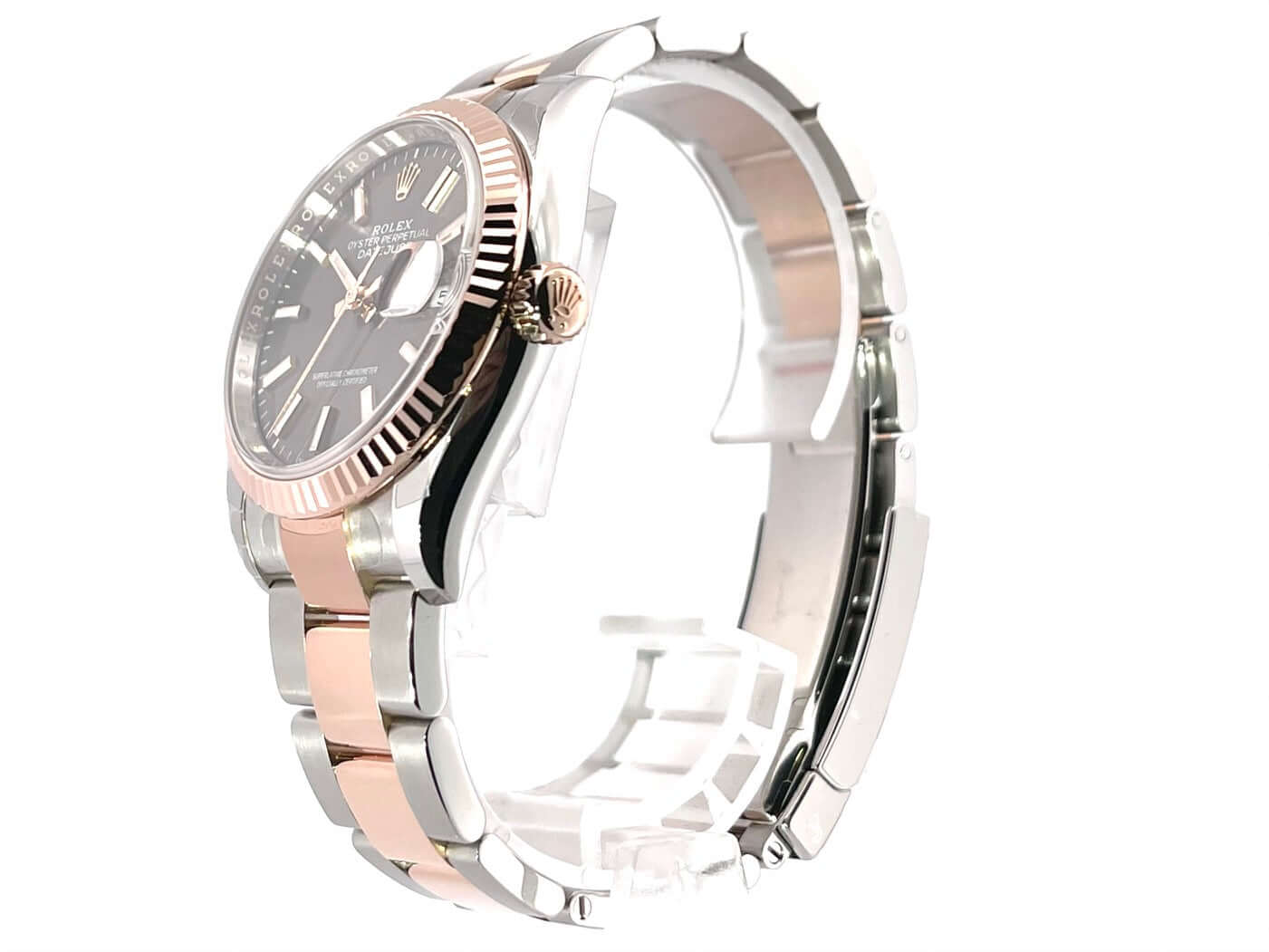 Gehäuse aus Edelstahl / Everose-Gold poliert und satiniert, Gehäusedurchmesser 36 mm, geriffelte 18 kt Everose-Gold Lünette, Oyster Armband aus Edelstahl / 18 kt Everose-Gold poliert und satiniert mit Faltschließe, dunkles Rhodium Zifferblatt mit aufgesetzten roségoldenen Indizes, roségoldene Zeiger, Automatikwerk, Rolex Manufakturkaliber 3235 mit 31 Steine, 28.800 A/h, 70 Stunden Gangreserve, Datumsanzeige, Chronometer, kratzfestes Saphirglas, verschraubte 18 kt Everose-Gold Krone, Edelstahlboden verschraubt, Wasserdicht bis zu 10 bar.