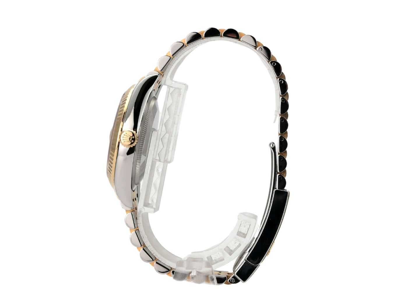 Gehäuse aus Edelstahl / Gelbgold poliert und satiniert, Gehäusedurchmesser 36 mm, geriffelte 18 kt Gelbgold Lünette, Jubilé Armband aus Edelstahl / 18 kt Gelbgold poliert und satiniert mit Faltschließe, schwarzes Diamantzifferblatt, Gelbgoldzeiger, Automatikwerk, Rolex Manufakturkaliber 3235 mit 31 Steinen, 28.800 A/h, 70 Stunden Gangreserve, Datumsanzeige, Chronometer, kratzfestes Saphirglas, verschraubte 18 kt-Gelbgoldkrone, Edelstahlboden verschraubt, wasserdicht bis zu 10 bar.