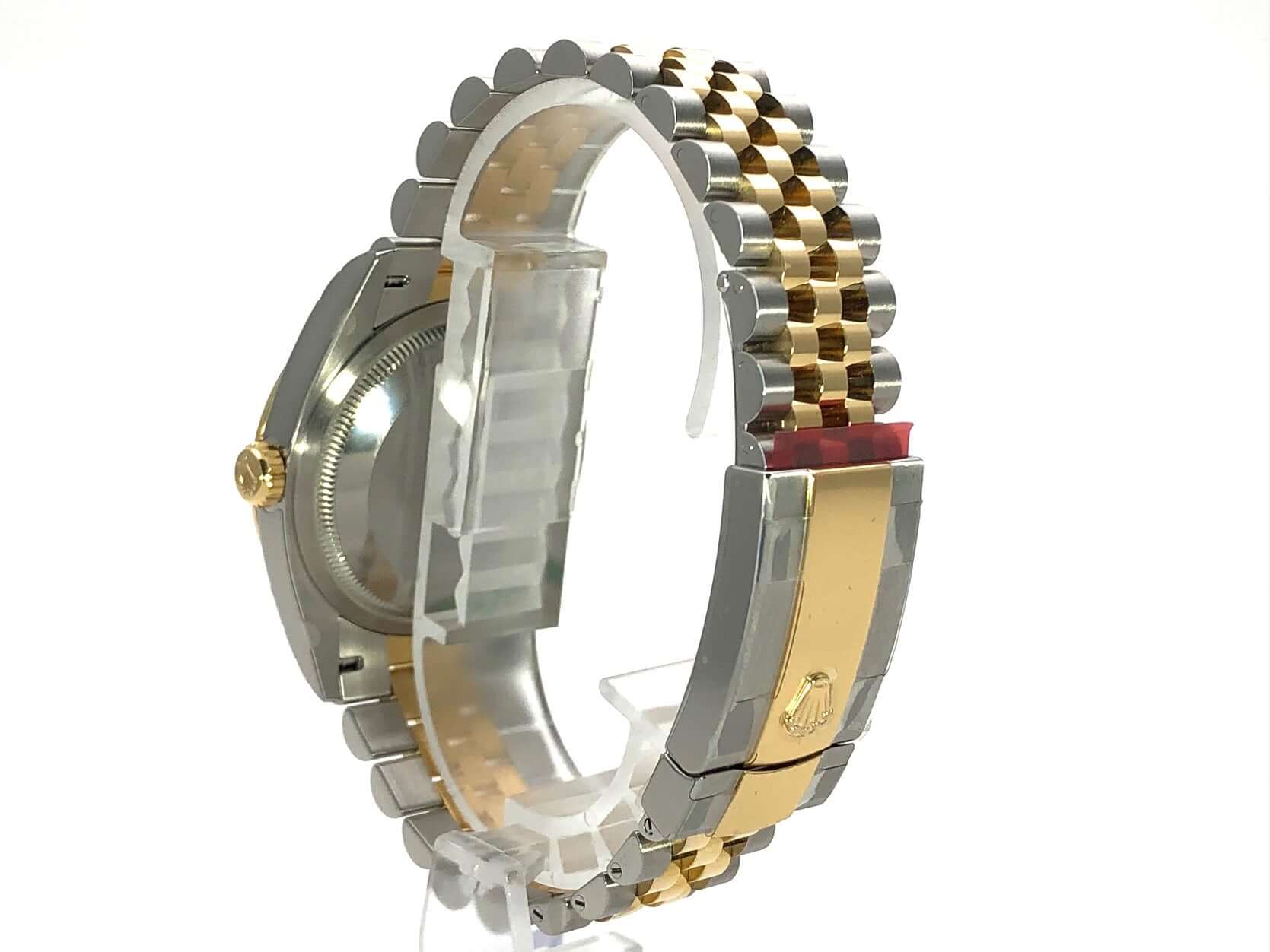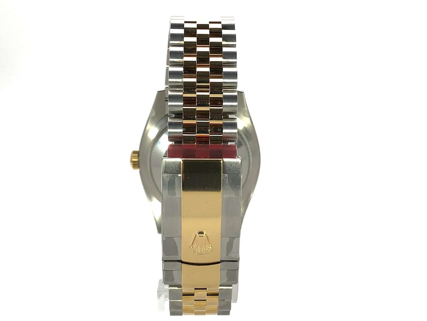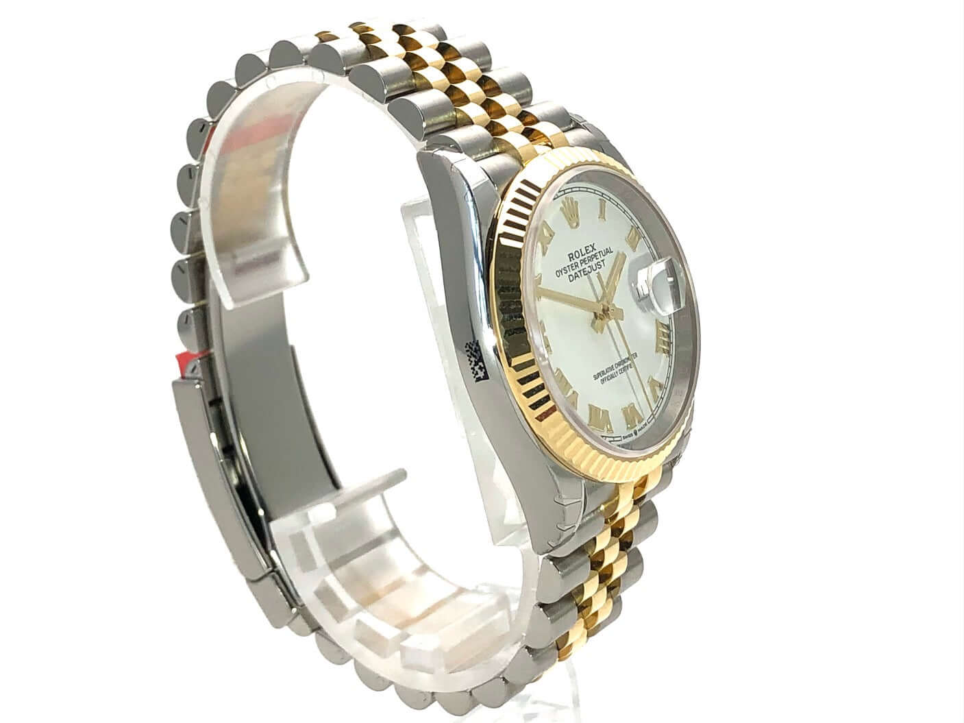 Gehäuse aus Edelstahl / Gelbgold poliert und satiniert, Gehäusedurchmesser 36 mm, geriffelte 18 kt Gelbgold Lünette, Jubilé Armband aus Edelstahl / 18 kt Gelbgold poliert und satiniert mit Faltschließe, weißes Zifferblatt mit aufgesetzten goldenen römischen Ziffern, goldene Zeiger, Automatikwerk, Rolex Manufakturkaliber 3235 mit 31 Steine, 28.800 A/h, 70 Stunden Gangreserve, Datumsanzeige, Chronometer, kratzfestes Saphirglas, verschraubte 18 kt Gelbgold Krone, Edelstahlboden verschraubt, Wasserdicht bis zu 10 bar.