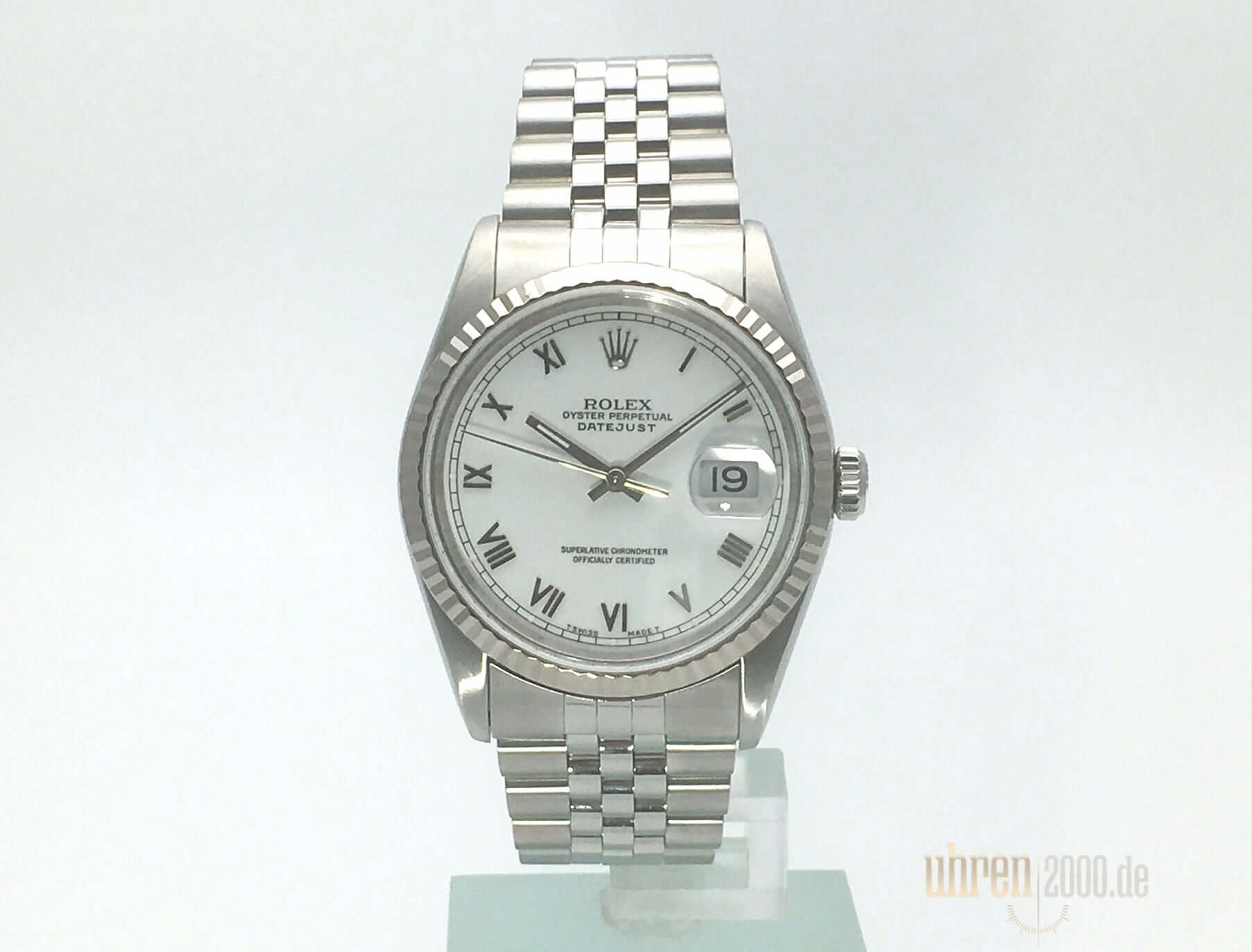 Rolex Datejust 36 Ref. 16234 Weiß Römisch Jubile-Band gebraucht aus 1995