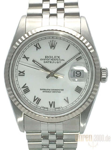 Rolex Datejust 36 16234 Weiß Römisch Jubile-Band gebraucht aus 1995