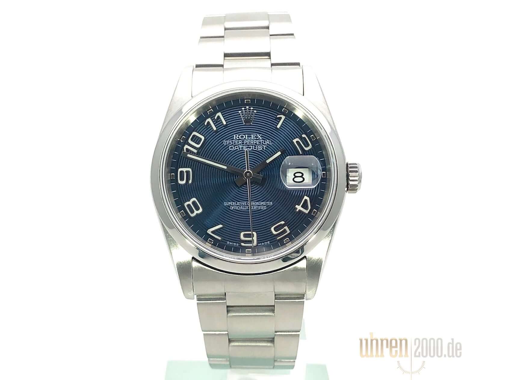 Rolex Datejust 36 Edelstahl 16200 Blau Arabisch aus 2005 LC100