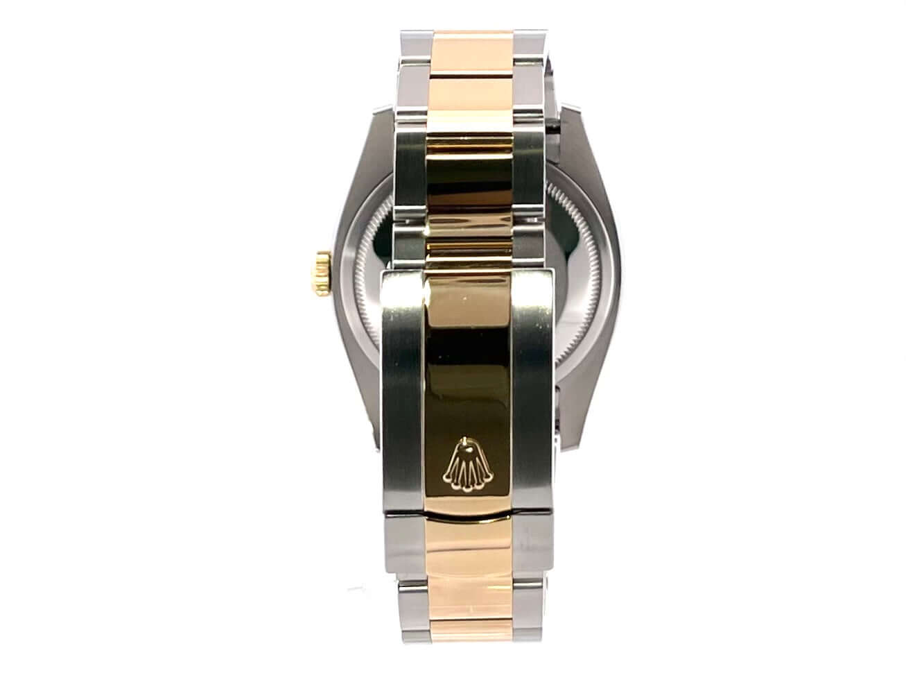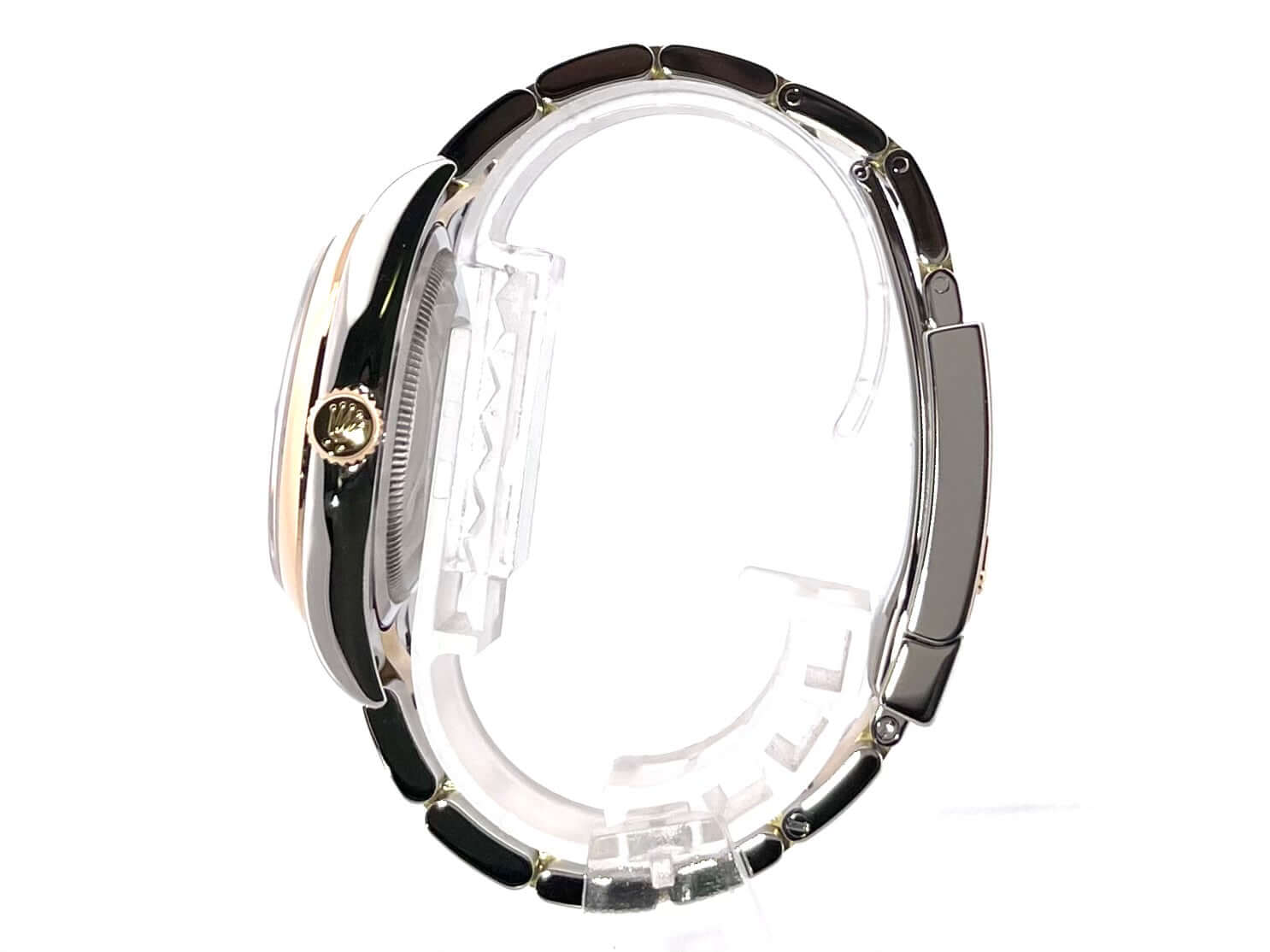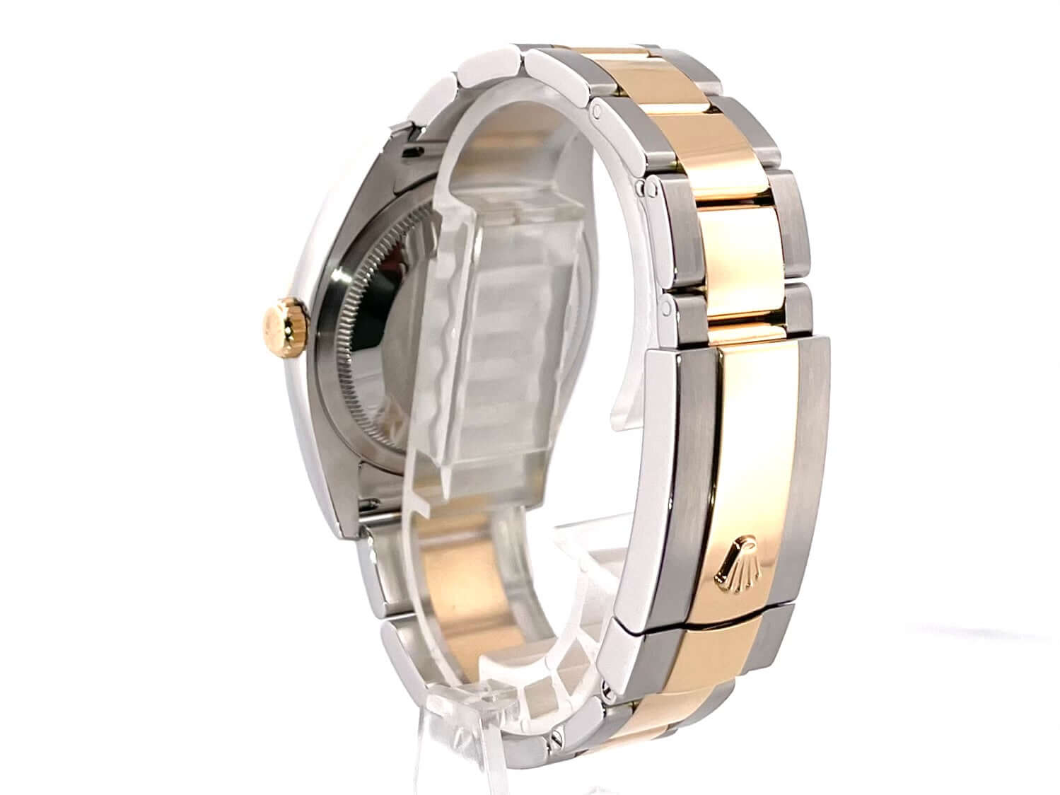 Gehäuse aus Edelstahl poliert und satiniert, Durchmesser 36 mm, Höhe 11,5 mm, glatte Lünette aus 18kt Gelbgold poliert, Oyster Armband aus Edelstahl / 18 kt Gelbgold poliert und satiniert mit Faltschließe, blaues Zifferblatt mit aufgesetzten Leuchtindizes, goldene Leuchtzeiger, Automatikwerk, Rolex Manufakturkaliber 3135 mit 31 Steinen, Schwingung 28.800 A/h, Datumsanzeige, Chronometer, Saphirglas, verschraubte Krone, verschraubter Edelstahlboden, Wasserdicht bis zu 10 bar.