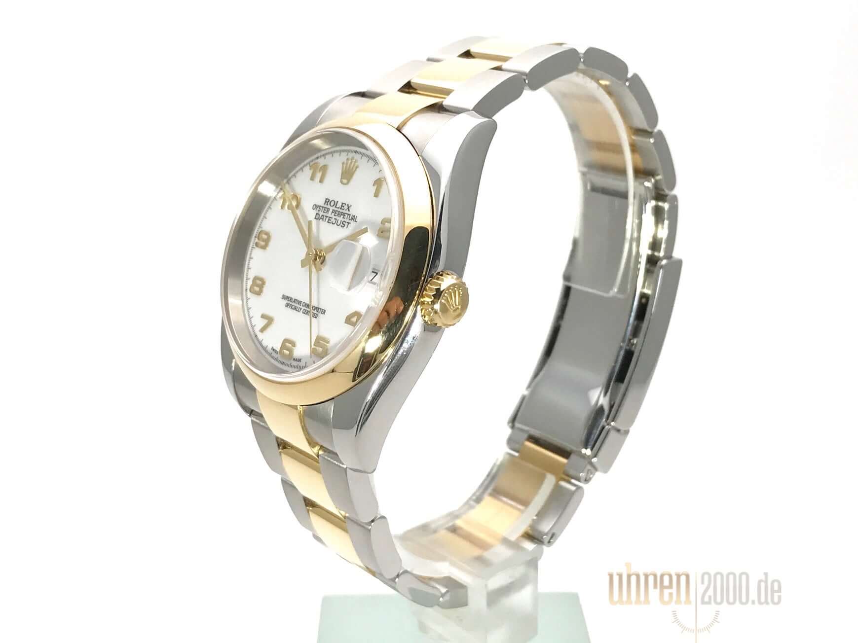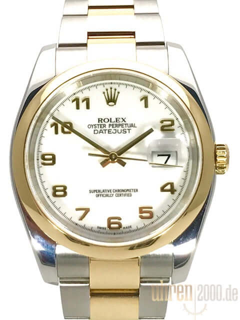 Rolex Datejust 36 Edelstahl / Gelbgold Ref. 116203 Weiß Arabisch