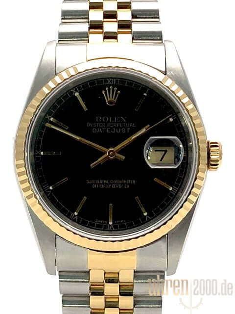 Rolex Datejust 36 Edelstahl - Gelbgold 16233 Schwarz aus 1998