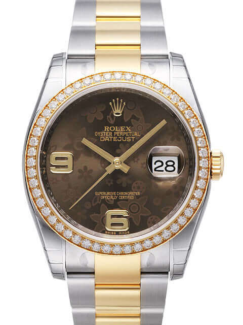 Rolex Datejust 36 Edelstahl Gelbgold Diamant Lünette 116243 Bronze Floral