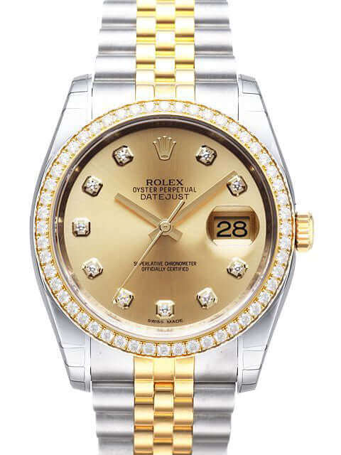 Rolex Datejust 36 Edelstahl Gelbgold Diamant Lünette 116243 Champagner DIA Jubilé