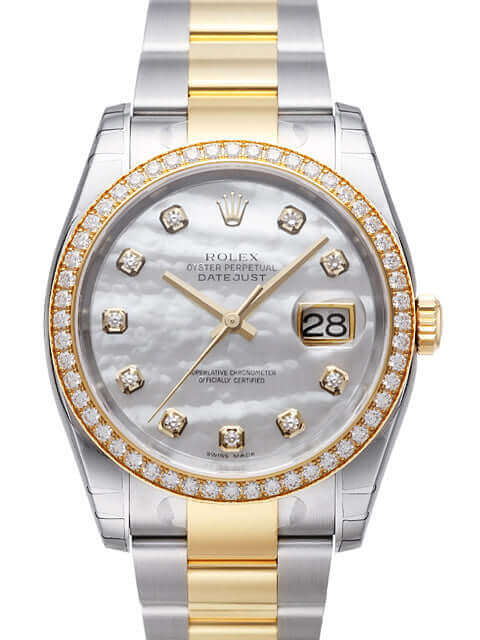 Rolex Datejust 36 Edelstahl Gelbgold Diamant Lünette 116243 Perlmutt DIA
