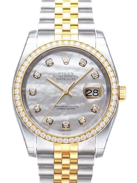 Rolex Datejust 36 Edelstahl Gelbgold Diamant Lünette 116243 Perlmutt DIA Jubilé