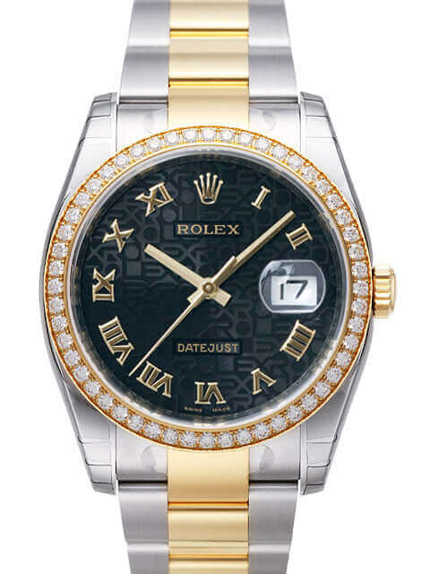 Rolex Datejust 36 Edelstahl / Gelbgold Diamant Lünette Ref. 116243 Jubilé Schwarz Römisch