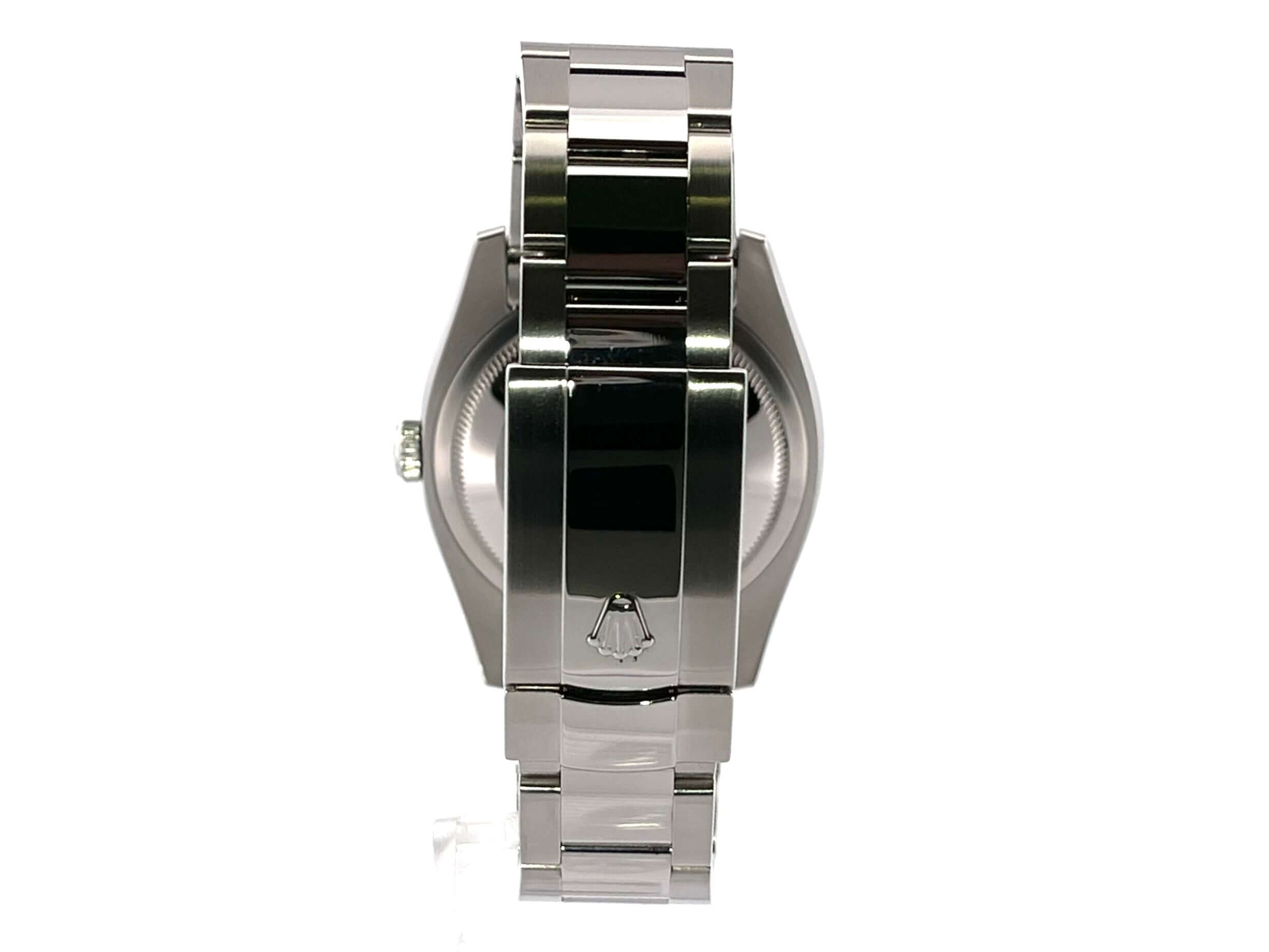 Gehäuse aus Edelstahl poliert und satiniert, Gehäusedurchmesser 36 mm, Gehäusehöhe 11,7 mm, Lünette aus 18 kt Weißgold geriffelt, Oyster Edelstahl Armband poliert und satiniert mit Faltschließe, blaues Zifferblatt mit 10 aufgesetzten Diamanten, Automatik, Rolex Manufakturkaliber 3135 mit 31 Steine, 28.800 A/h, Datumsanzeige, Chronometer, Saphirglas kratzfest, Krone verschraubbar, Edelstahlboden verschraubt, wasserdicht bis zu 10 bar.