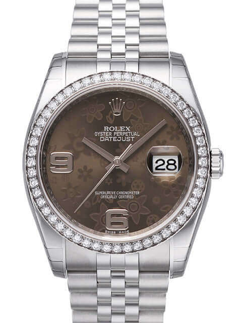Rolex Datejust 36 Edelstahl Weißgold Diamant Lünette 116244 Bronze Floral Jub