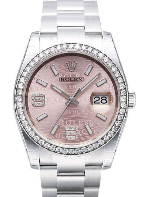 Rolex Datejust 36 Edelstahl Weißgold Diamant Lünette Ref. 116244 Pink Wave DIA