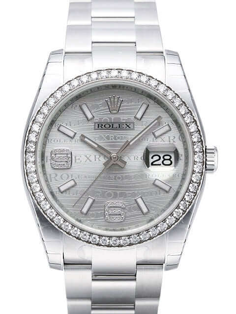Rolex Datejust 36 Edelstahl Weißgold Diamant Lünette Ref. 116244 Rhodium Wave DIA