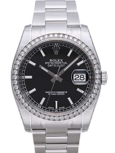 Rolex Datejust 36 Edelstahl Weißgold Diamant Lünette 116244 Schwarz