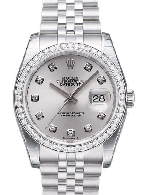 Rolex Datejust 36 Edelstahl Weißgold Diamant Lünette 116244 Silber DIA Jubilé