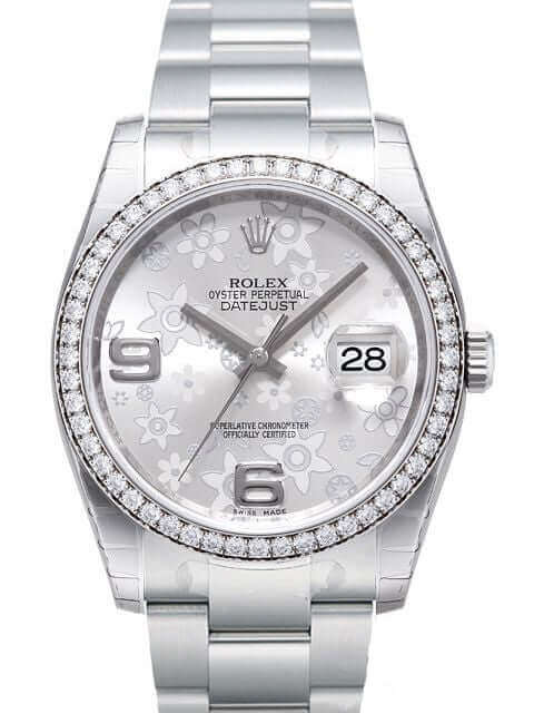 Rolex Datejust 36 Edelstahl Weißgold Diamant Lünette 116244 Silber Floral
