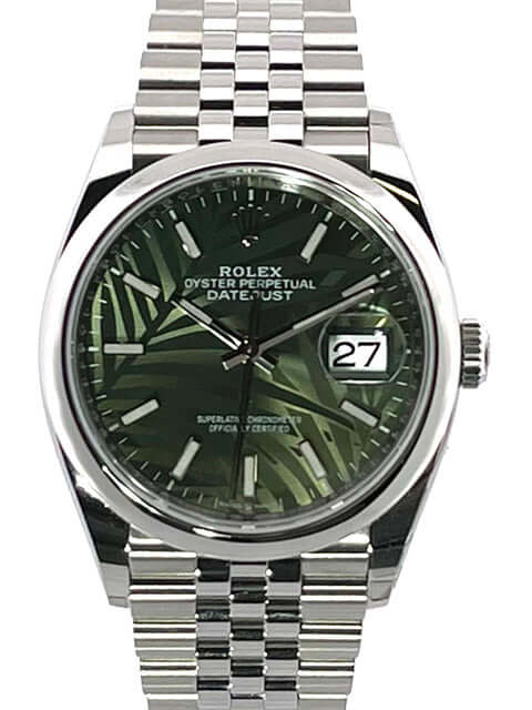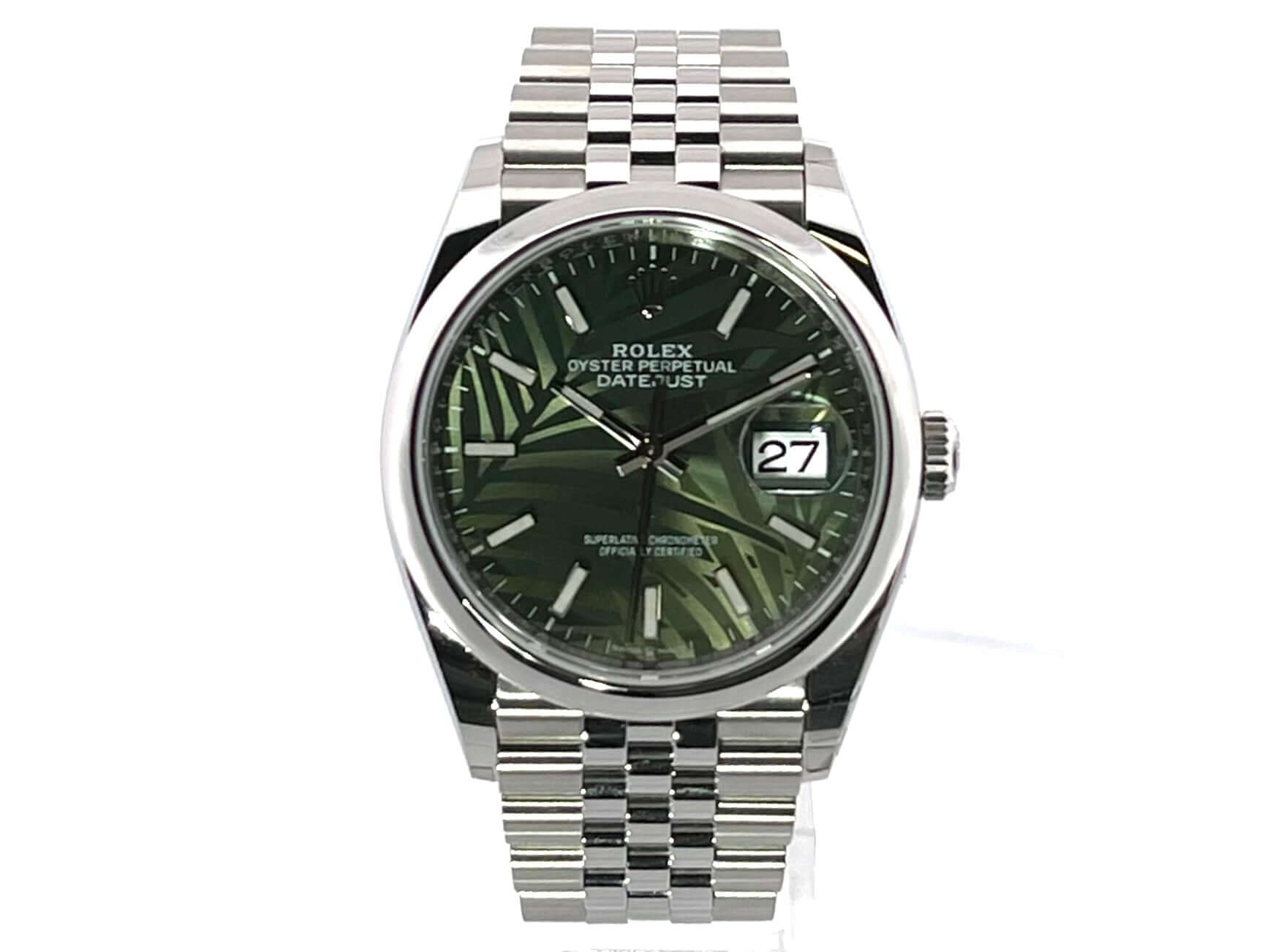Rolex Datejust 36 Oystersteel 126200 Olivgrün Palmenmuster Jubile-Band