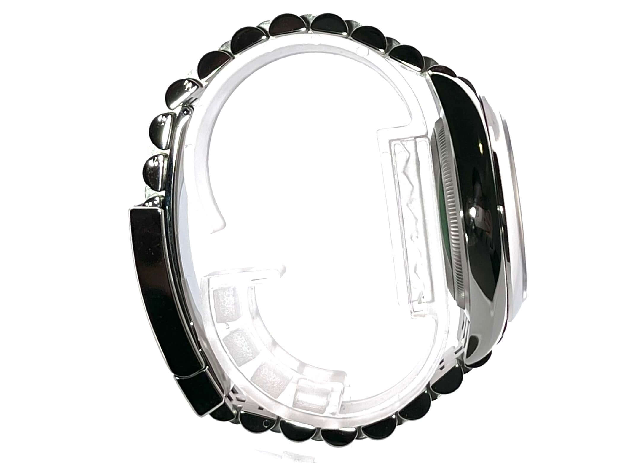 Gehäuse aus Edelstahl Oystersteel poliert und satiniert, Gehäusedurchmesser 36 mm, Olivgrünes Zifferblatt mit Palmenmuster und aufgesetzten Leuchtindizes, Leuchtzeiger, Jubile-Edelstahlband mit Faltschließe, Automatik, Rolex Manufakturkaliber 3235, 70 Stunden Gangreserve, Datumsanzeige, Chronometer, Saphirglas, verschraubte Krone, Edelstahlboden verschraubt, Wasserdicht bis 10 bar.