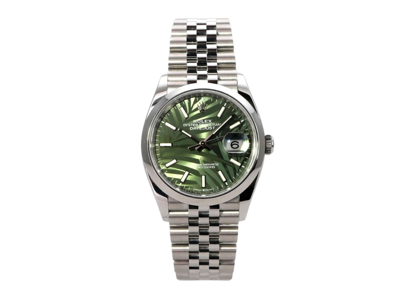Rolex Datejust 36 Oystersteel 126200 Olivgrün Palmenmuster Jubile-Band