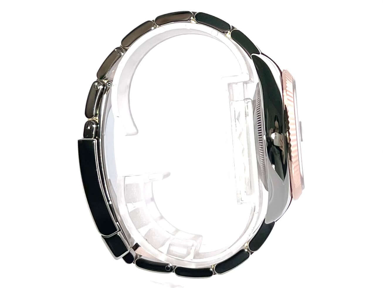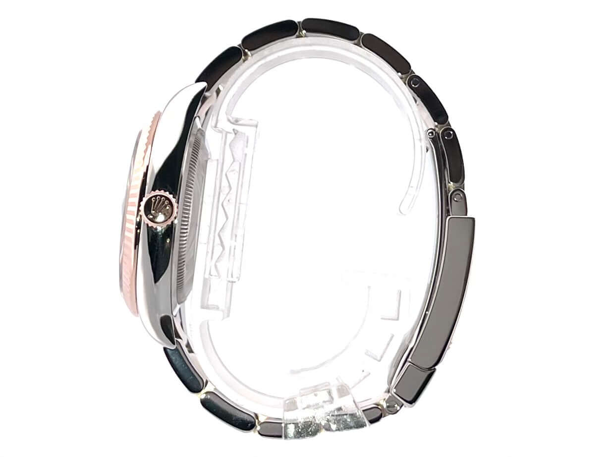 Gehäuse aus Edelstahl / Everose-Gold poliert und satiniert, Gehäusedurchmesser 36 mm, geriffelte 18 kt Everose-Gold Lünette, Oyster Armband aus Edelstahl / 18 kt Everose-Gold poliert und satiniert mit Faltschließe, schwarzes Diamantzifferblatt, Automatikwerk, Rolex Manufakturkaliber 3235 mit 31 Steine, 28.800 A/h, 70 Stunden Gangreserve, Datumsanzeige, Chronometer, kratzfestes Saphirglas, verschraubte 18 kt Everose-Gold Krone, Edelstahlboden verschraubt, Wasserdicht bis zu 10 bar.