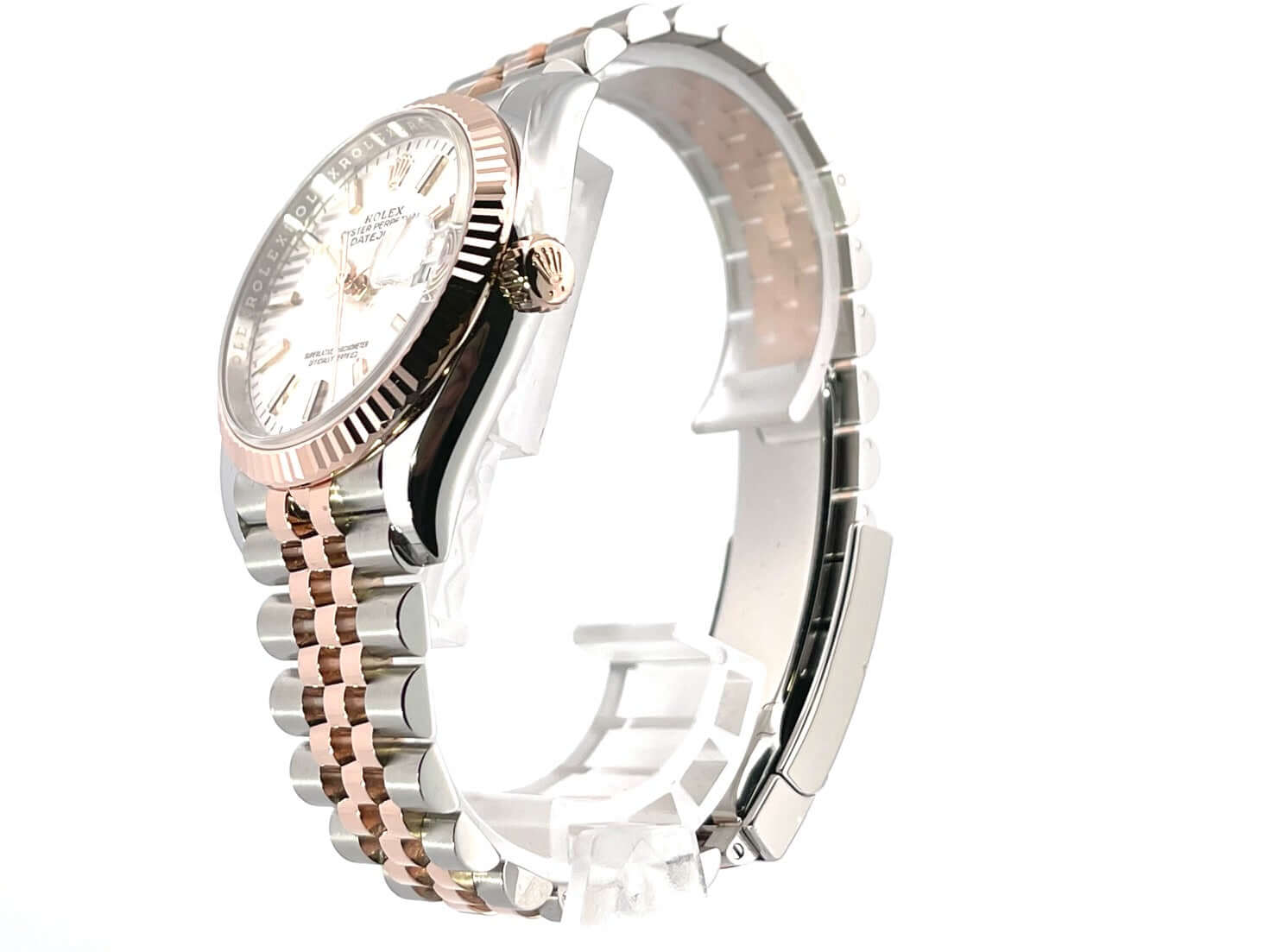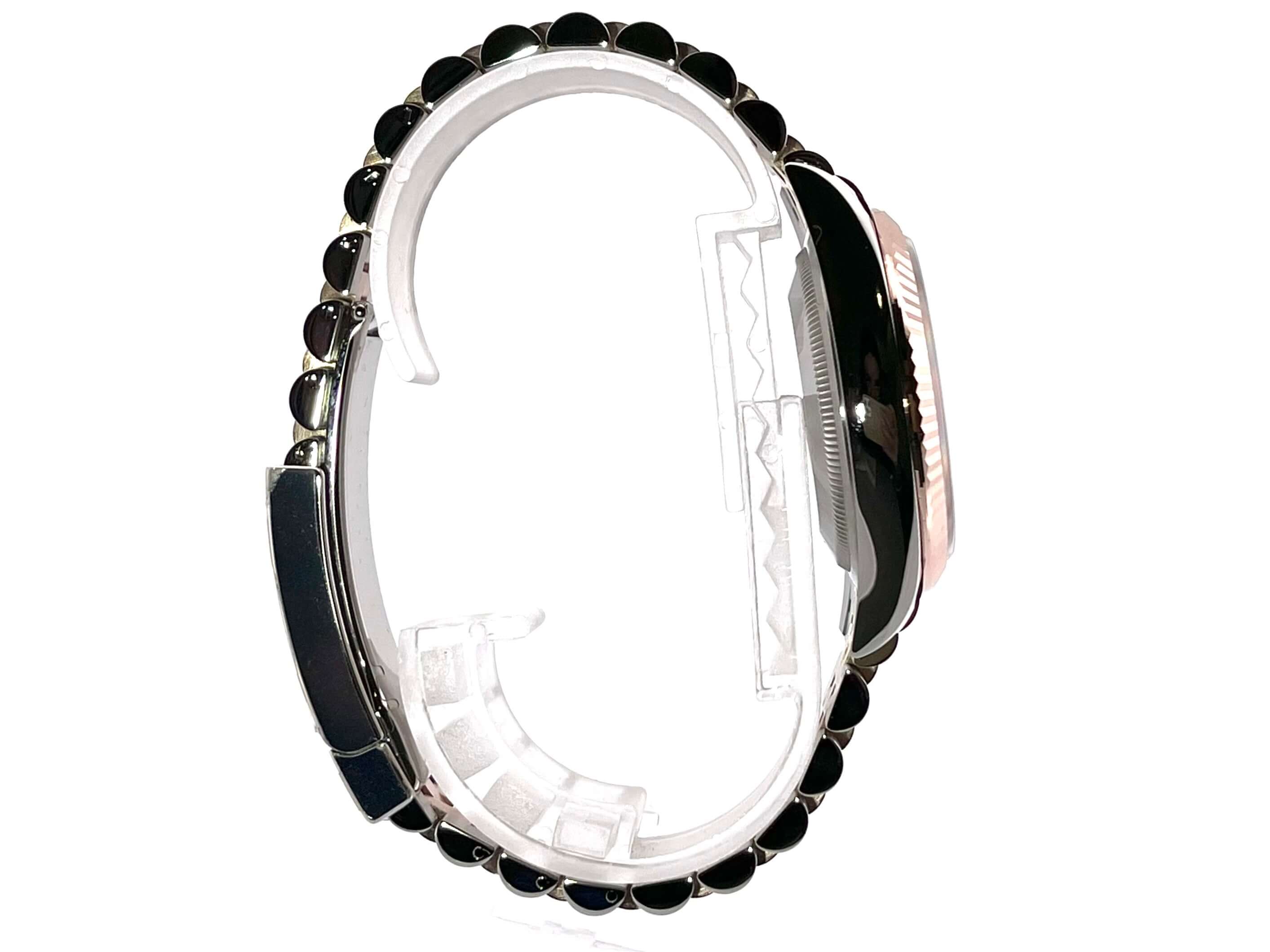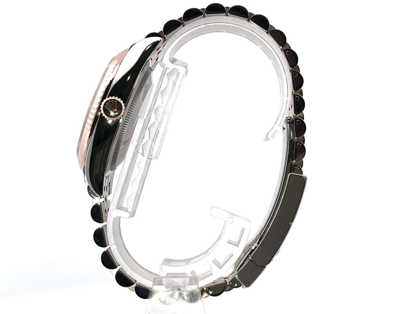 Gehäuse aus Edelstahl / Everose-Gold poliert und satiniert, Gehäusedurchmesser 36 mm, geriffelte 18 kt Everose-Gold Lünette, Jubile Armband aus Edelstahl / 18 kt Everose-Gold poliert und satiniert mit Faltschließe, silberfarbenes Zifferblatt mit Riffelmuster, Leuchtzeiger, Automatikwerk, Rolex Manufakturkaliber 3235 mit 31 Steine, 28.800 A/h, 70 Stunden Gangreserve, Datumsanzeige, Chronometer, kratzfestes Saphirglas, verschraubte 18 kt Everose-Gold Krone, Edelstahlboden verschraubt, Wasserdicht bis zu 10 bar.