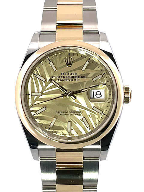 Rolex Datejust 36 Oystersteel - Gelbgold 126203 Golden Palmenmuster