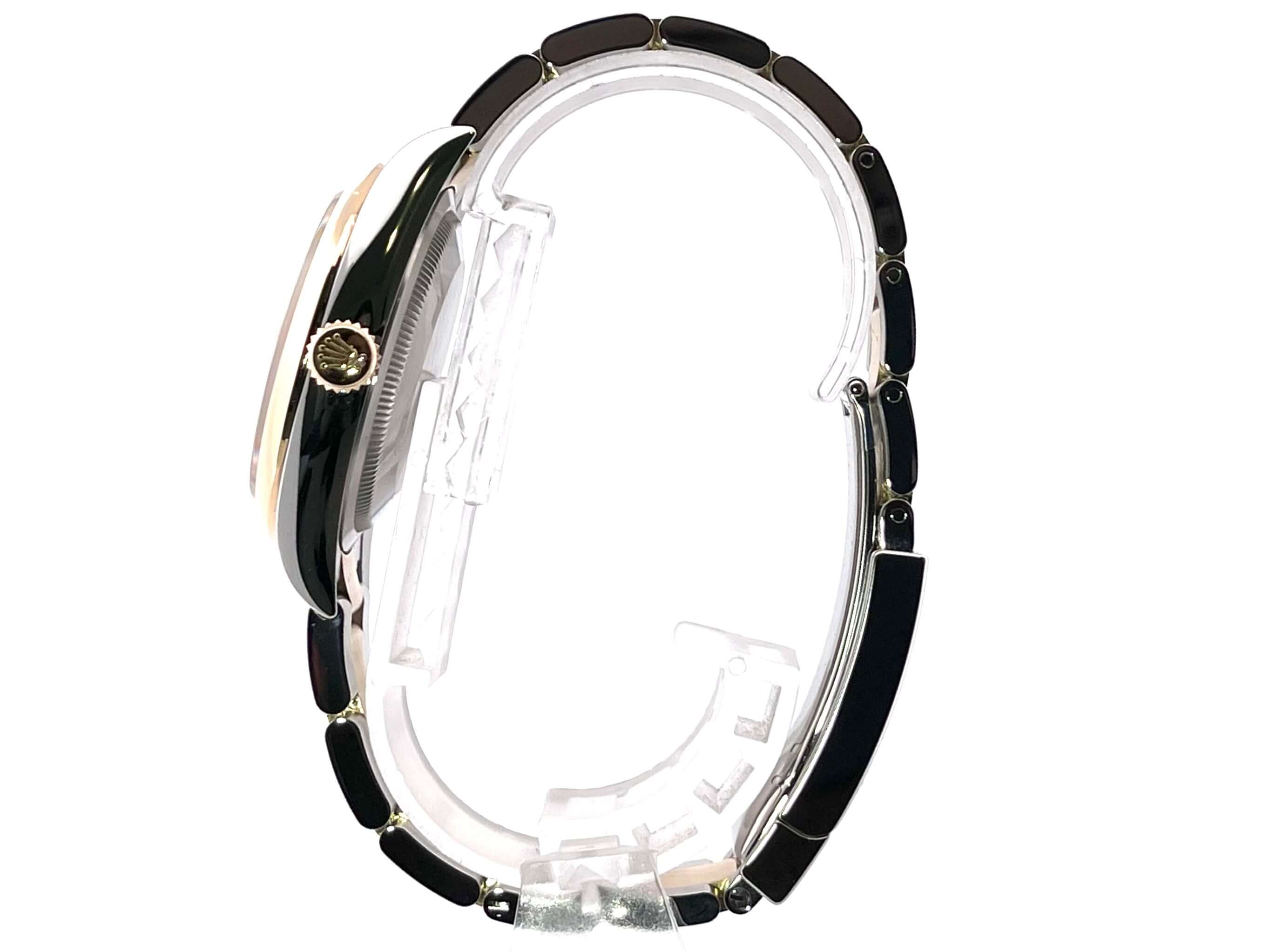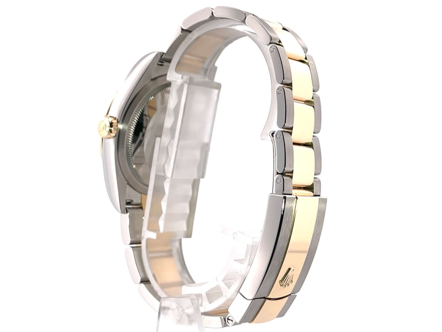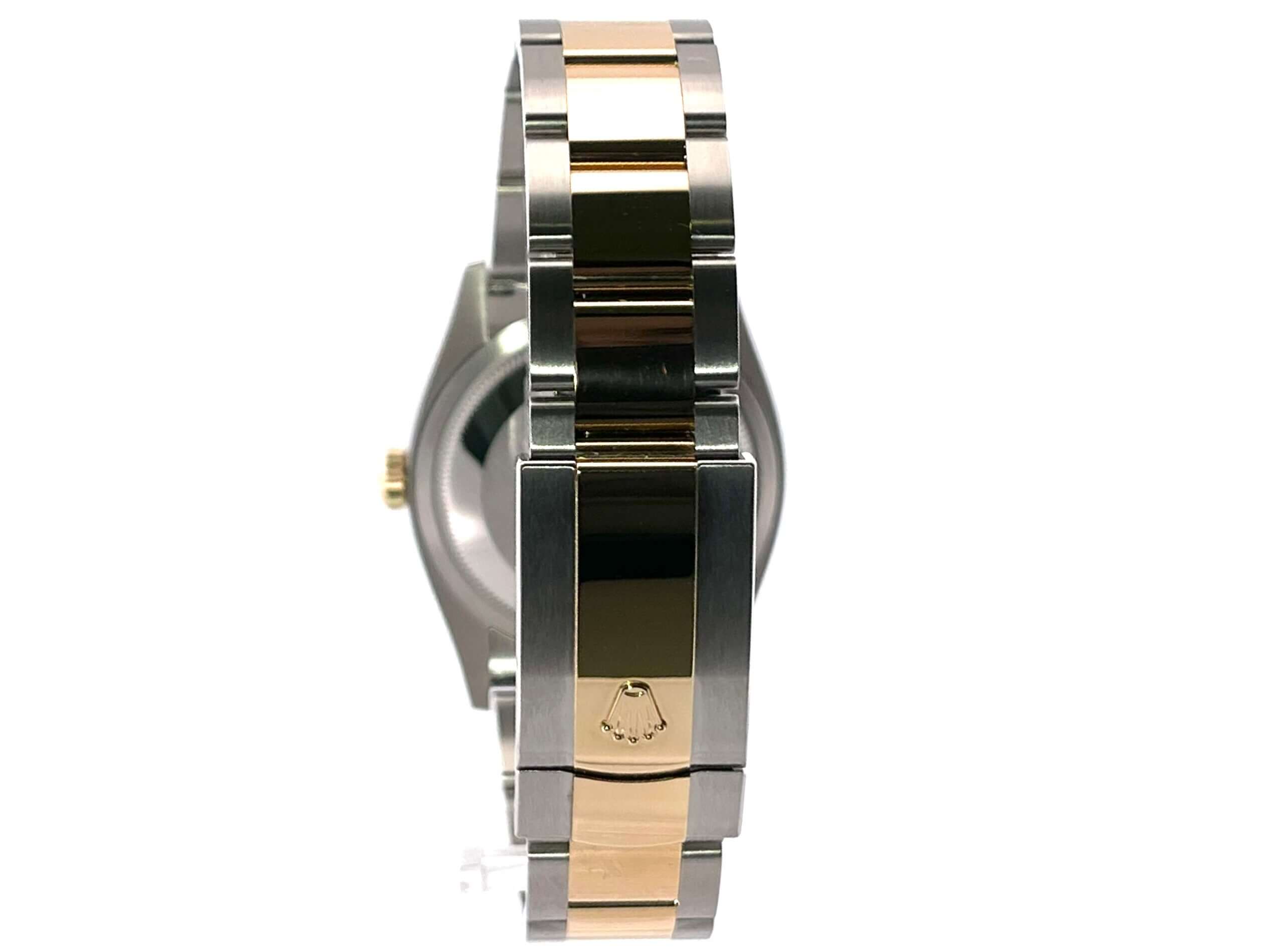 Gehäuse aus Edelstahl / Gelbgold poliert und satiniert, Gehäusedurchmesser 36 mm, polierte 18 kt Gelbgold Lünette, Oyster-Armband aus Edelstahl / 18 kt Gelbgold poliert und satiniert mit Faltschließe, Golden Palmenmuster Zifferblatt mit aufgesetzten goldenen Indizes, Gelbgold Zeiger, Automatikwerk, Rolex Manufakturkaliber 3235 mit 31 Steine, 28.800 A/h, 70 Stunden Gangreserve, Datumsanzeige, Chronometer, kratzfestes Saphirglas, verschraubte 18 kt Gelbgold Krone, Edelstahlboden verschraubt, Wasserdicht bis zu 10 bar.