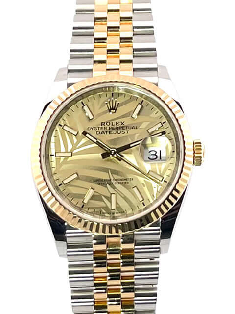 Rolex Datejust 36 Oystersteel - Gelbgold 126233 Golden Palmenmuster Jubile-Band