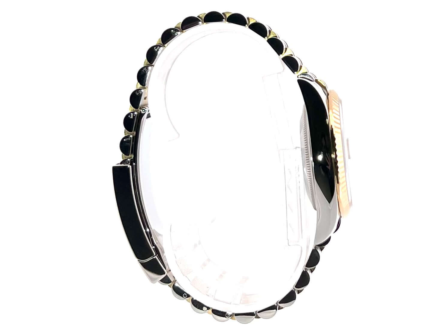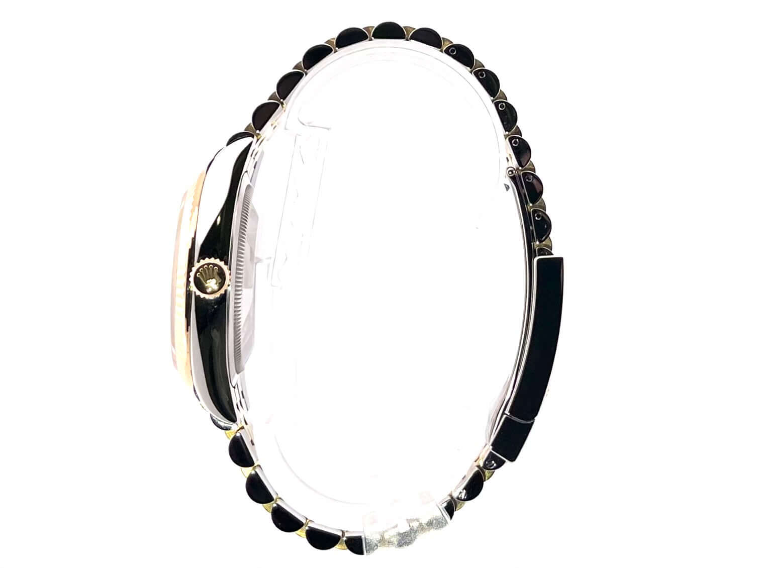 Gehäuse aus Edelstahl / Gelbgold poliert und satiniert, Gehäusedurchmesser 36 mm, geriffelte 18 kt Gelbgold Lünette, Jubile-Armband aus Edelstahl / 18 kt Gelbgold poliert und satiniert mit Faltschließe, Goldenes Zifferblatt mit Palmenmuster und aufgesetzten Indizes, Gelbgold Leuchtzeiger, Automatikwerk, Rolex Manufakturkaliber 3235 mit 31 Steine, 28.800 A/h, 70 Stunden Gangreserve, Datumsanzeige, Chronometer, kratzfestes Saphirglas, verschraubte 18 kt Gelbgold Krone, Edelstahlboden verschraubt, Wasserdicht bis zu 10 bar.
