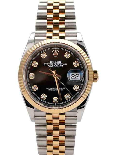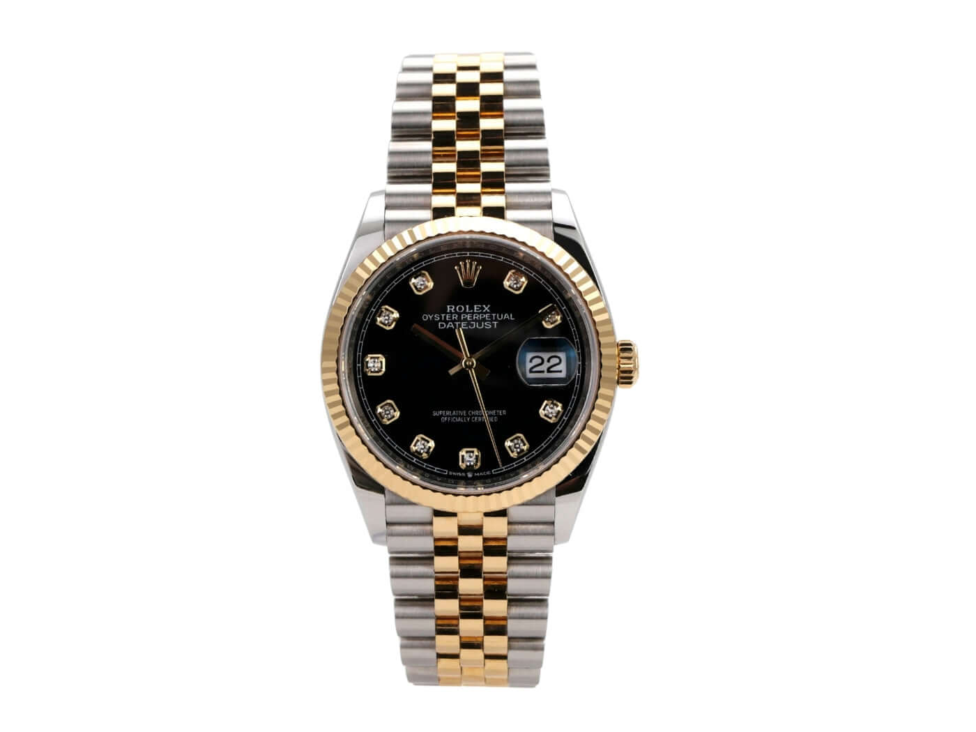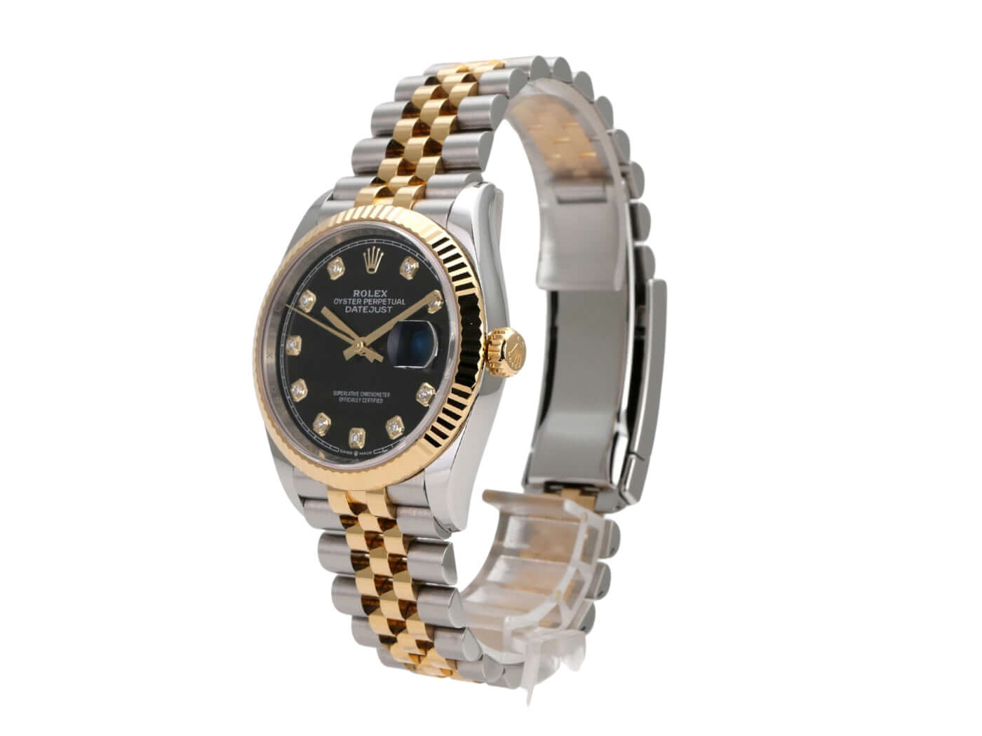 Rolex Datejust 36 Oystersteel Gelbgold 126233 Schwarz Diamant Jubile-Band