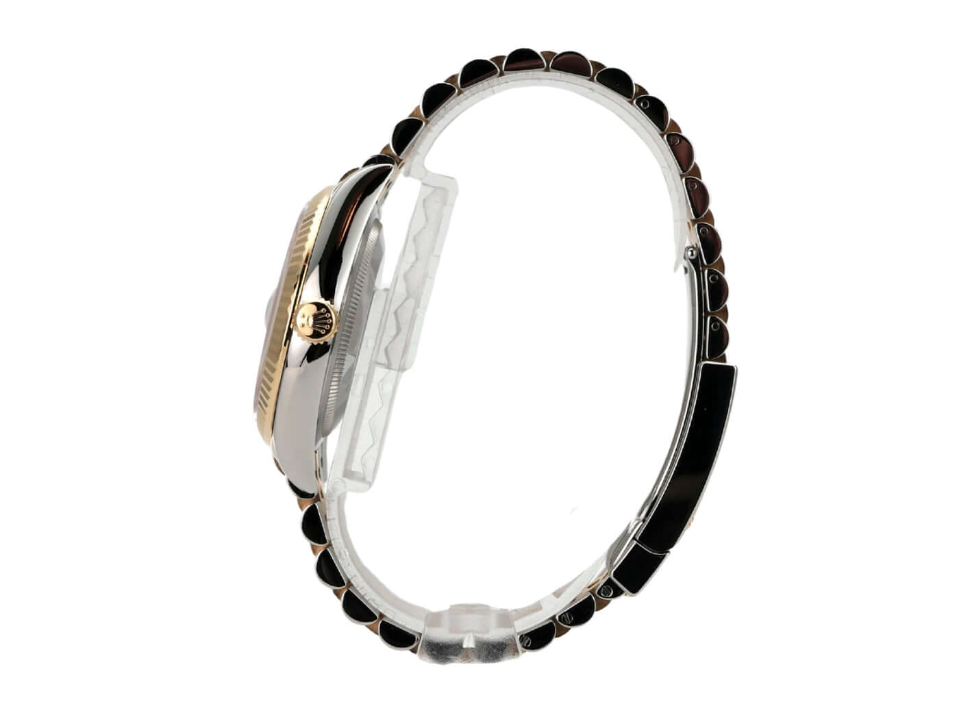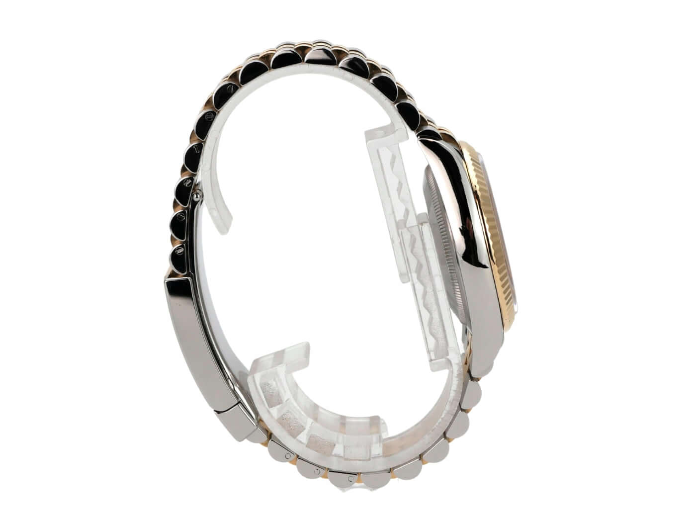 Gehäuse aus Edelstahl / Gelbgold poliert und satiniert, Gehäusedurchmesser 36 mm, geriffelte 18 kt Gelbgold Lünette, Jubilé Armband aus Edelstahl / 18 kt Gelbgold poliert und satiniert mit Faltschließe, weißes Zifferblatt mit aufgesetzten goldenen Indizes, Gelbgold Zeiger, Automatikwerk, Rolex Manufakturkaliber 3235 mit 31 Steine, 28.800 A/h, 70 Stunden Gangreserve, Datumsanzeige, Chronometer, kratzfestes Saphirglas, verschraubte 18 kt Gelbgold Krone, Edelstahlboden verschraubt, wasserdicht bis zu 10 bar.