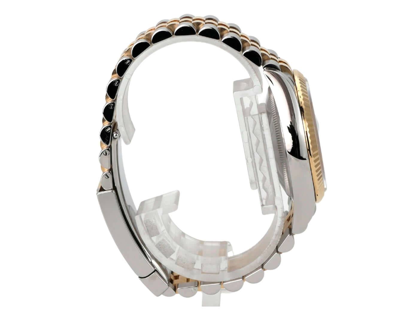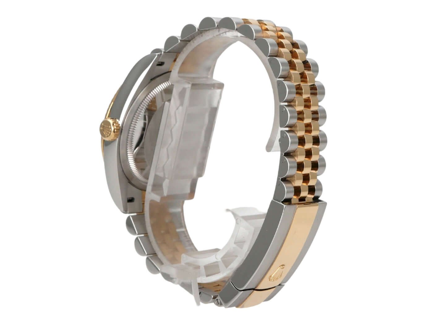 Gehäuse aus Edelstahl / Gelbgold poliert und satiniert, Gehäusedurchmesser 36 mm, geriffelte 18 kt Gelbgold Lünette, Jubilé Armband aus Edelstahl / 18 kt Gelbgold poliert und satiniert mit Faltschließe, weißes Zifferblatt mit aufgesetzten goldenen römischen Ziffern, goldene Zeiger, Automatikwerk, Rolex Manufakturkaliber 3235 mit 31 Steine, 28.800 A/h, 70 Stunden Gangreserve, Datumsanzeige, Chronometer, kratzfestes Saphirglas, verschraubte 18 kt Gelbgold Krone, Edelstahlboden verschraubt, wasserdicht bis zu 10 bar.