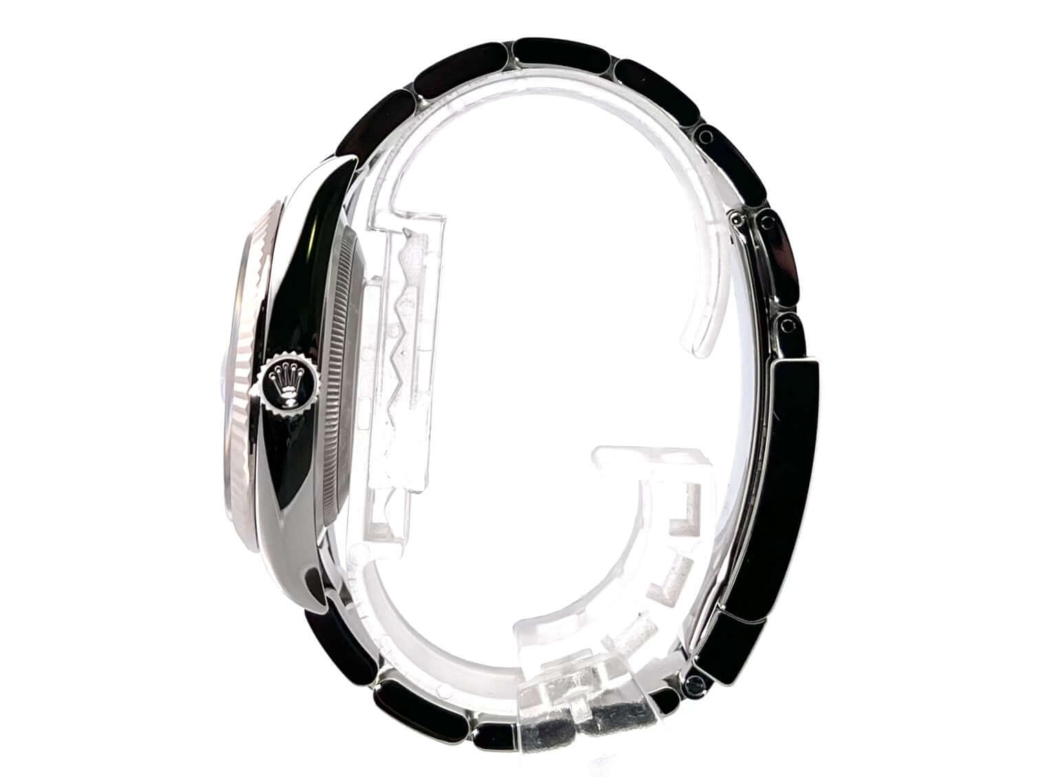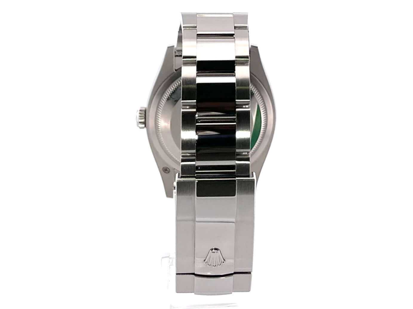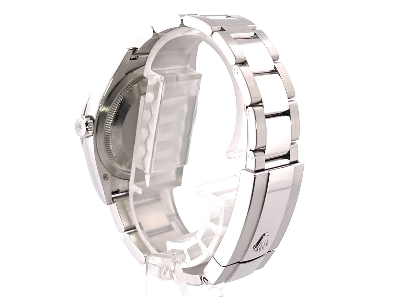 Gehäuse aus Edelstahl Oystersteel poliert und satiniert, Gehäusedurchmesser 36 mm, Lünette aus 18 kt Weißgold, Oyster Edelstahlband mit Faltschließe, blaues Zifferblatt mit aufgesetzten Leuchtindizes, Leuchtzeiger, Automatik, Rolex Manufakturkaliber 3235, 70 Stunden Gangreserve, Datumsanzeige, Chronometer, Saphirglas, verschraubte Krone, Edelstahlboden verschraubt, Wasserdicht bis 10 bar.