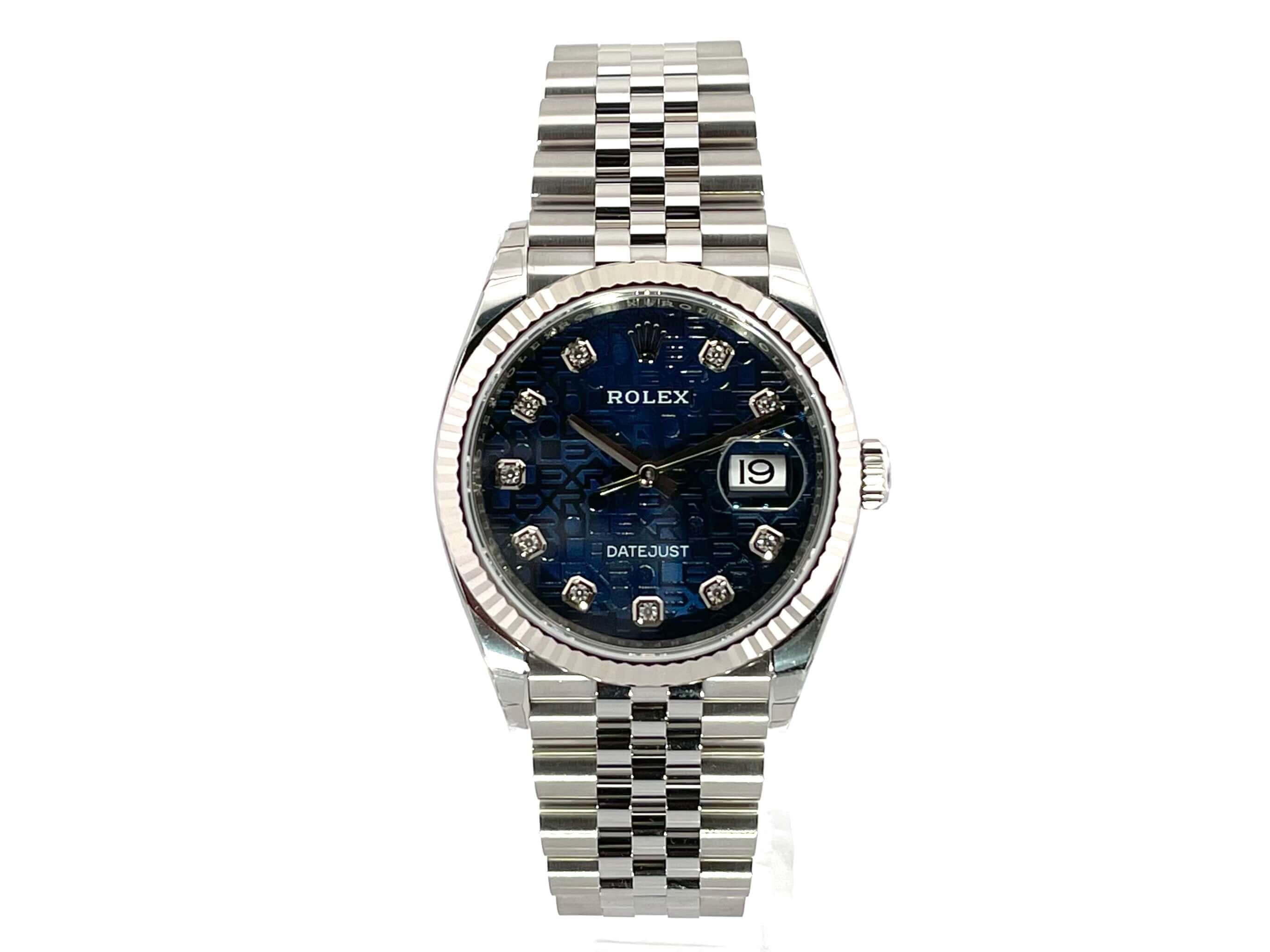 Rolex Datejust 36 Oystersteel Weißgold 126234 Blau J Diamant Jubile-Band verklebt
