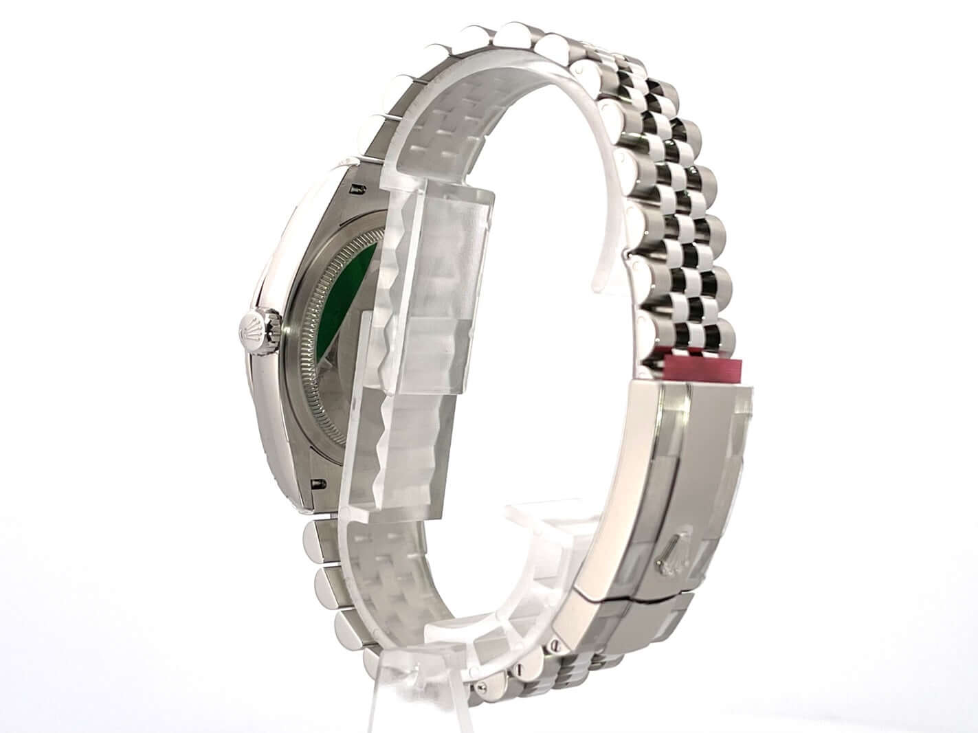 Gehäuse aus Edelstahl Oystersteel poliert und satiniert, Gehäusedurchmesser 36 mm, Lünette aus 18 kt Weißgold, Jubile-Edelstahlband mit Faltschließe, blaues Jubile Zifferblatt mit 10 aufgesetzten Diamanten, Automatik, Rolex Manufakturkaliber 3235, 70 Stunden Gangreserve, Datumsanzeige, Chronometer, Saphirglas, verschraubte Krone, Edelstahlboden verschraubt, Wasserdicht bis 10 bar.