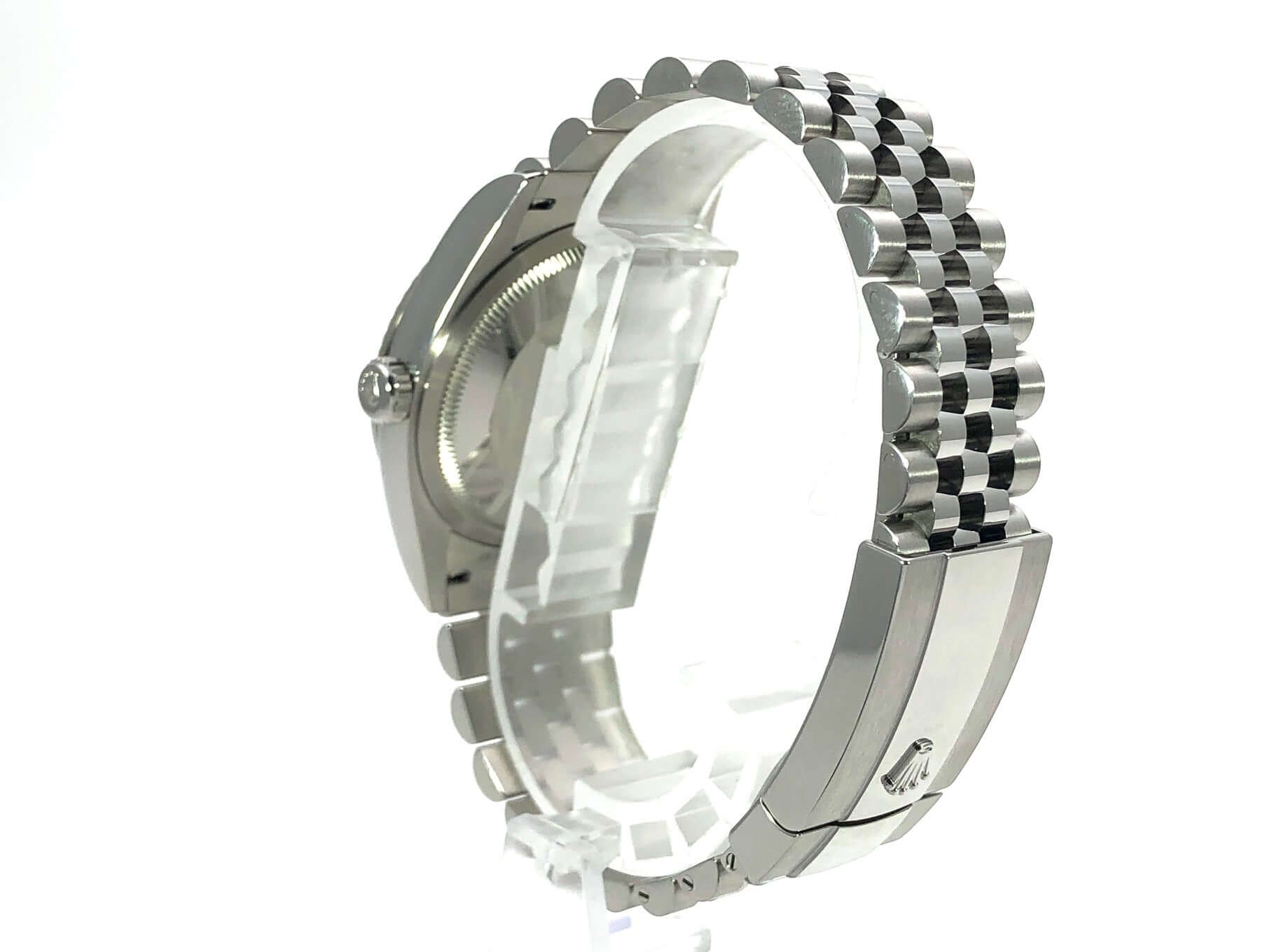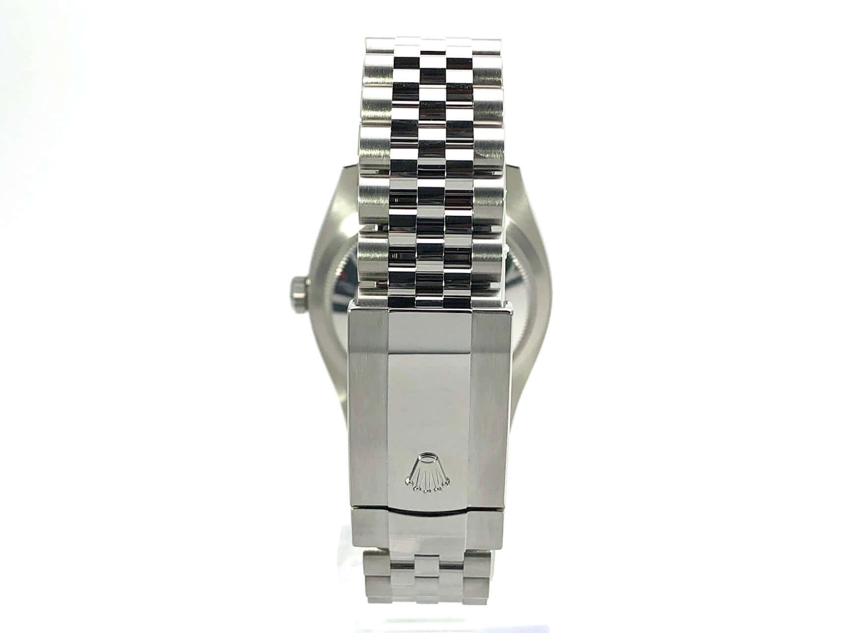 Gehäuse aus Edelstahl Oystersteel poliert und satiniert, Gehäusedurchmesser 36 mm, Lünette aus 18 kt Weißgold, Jubile-Edelstahlband mit Faltschließe, blaues Zifferblatt mit aufgesetzten Leuchtindizes, Leuchtzeiger, Automatik, Rolex Manufakturkaliber 3235, 70 Stunden Gangreserve, Datumsanzeige, Chronometer, Saphirglas, verschraubte Krone, Edelstahlboden verschraubt, Wasserdicht bis 10 bar.