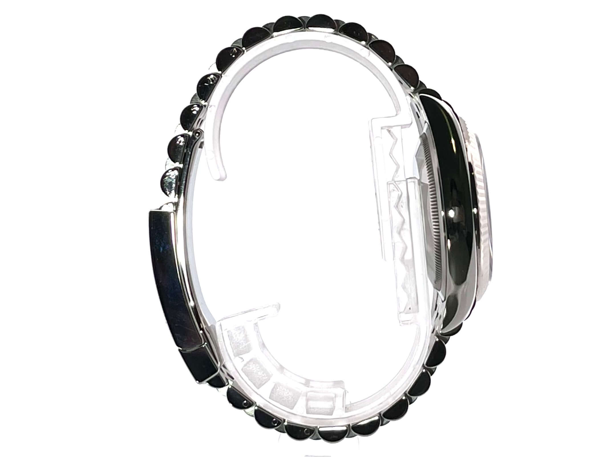 Gehäuse aus Edelstahl Oystersteel poliert und satiniert, Gehäusedurchmesser 36 mm, Lünette aus 18 kt Weißgold, Jubile-Edelstahlband mit Faltschließe, blaues Zifferblatt mit aufgesetzten Leuchtindizes, Leuchtzeiger, Automatik, Rolex Manufakturkaliber 3235, 70 Stunden Gangreserve, Datumsanzeige, Chronometer, Saphirglas, verschraubte Krone, Edelstahlboden verschraubt, Wasserdicht bis 10 bar.