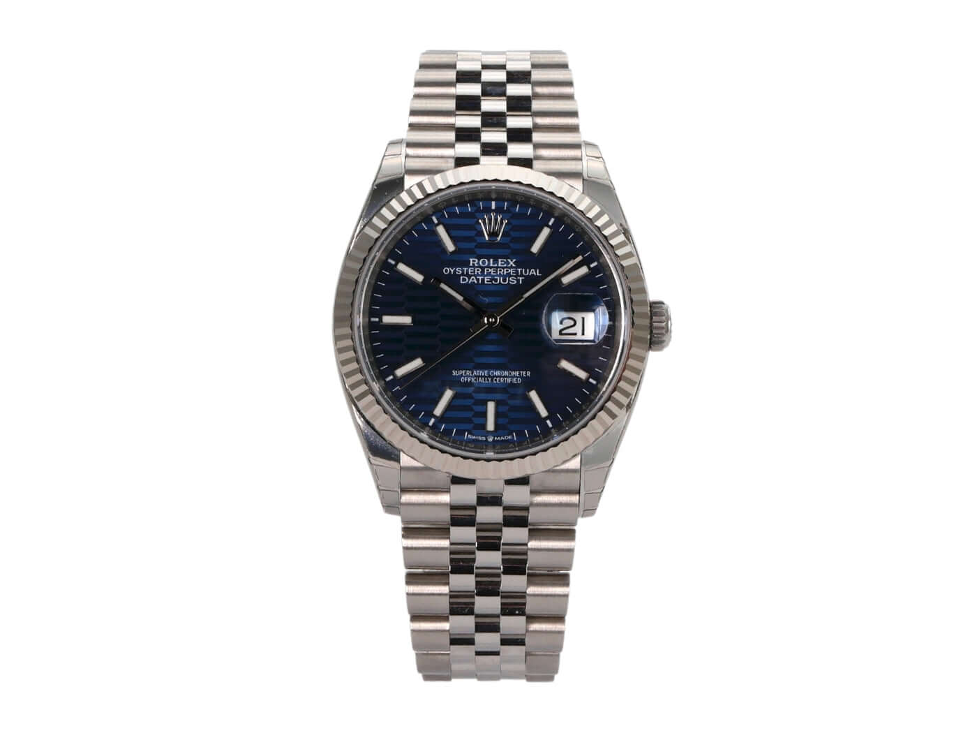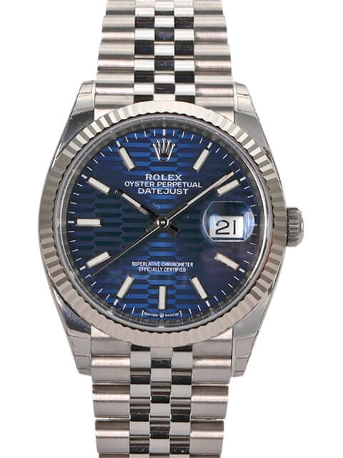 Rolex Datejust 36 Oystersteel Weißgold 126234 Blau Riffelmuster Jubile-Band