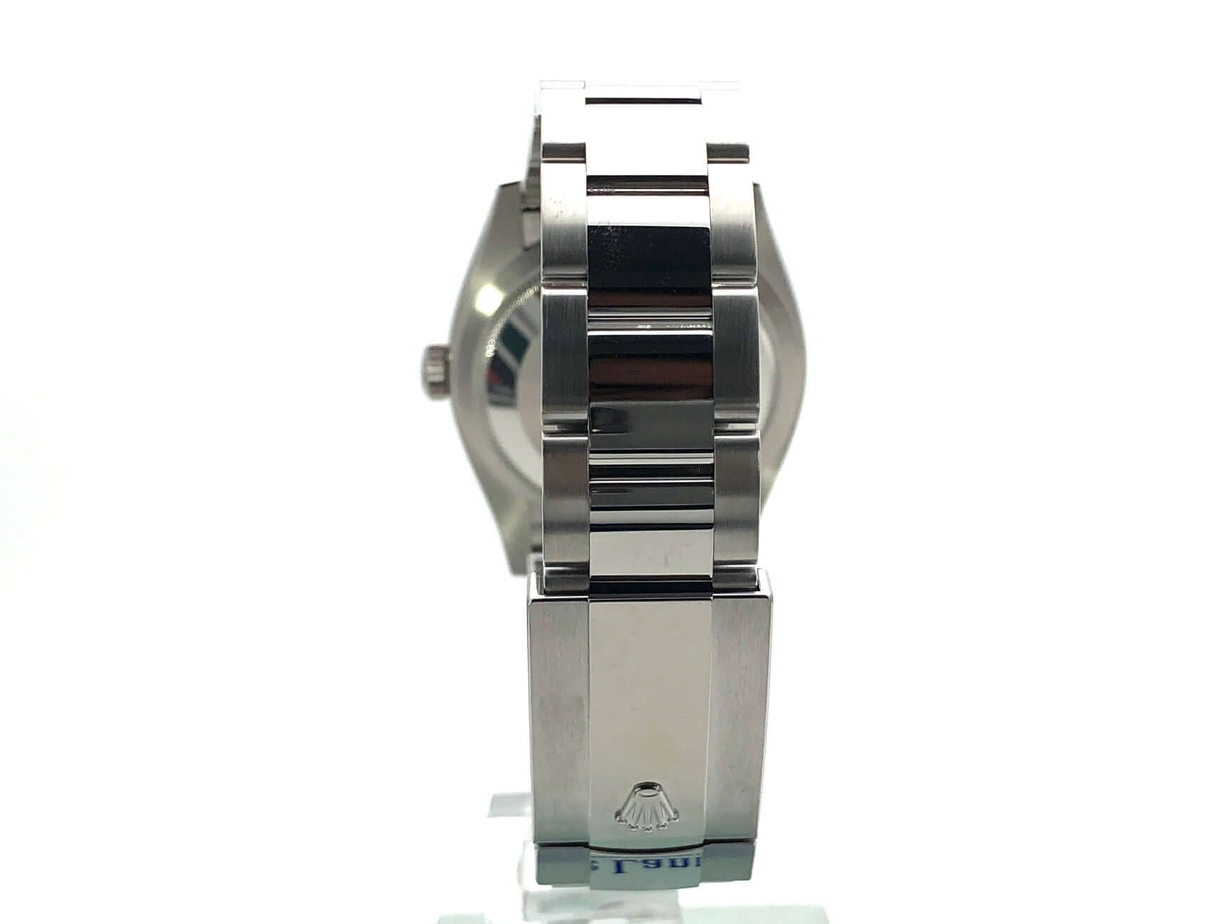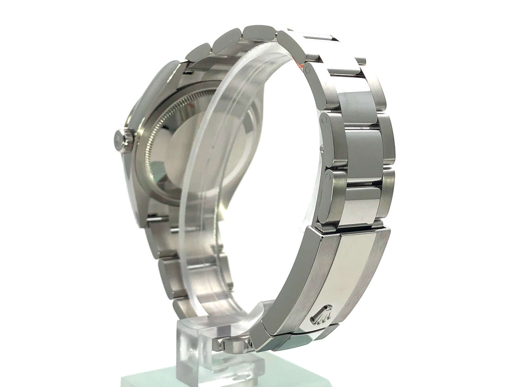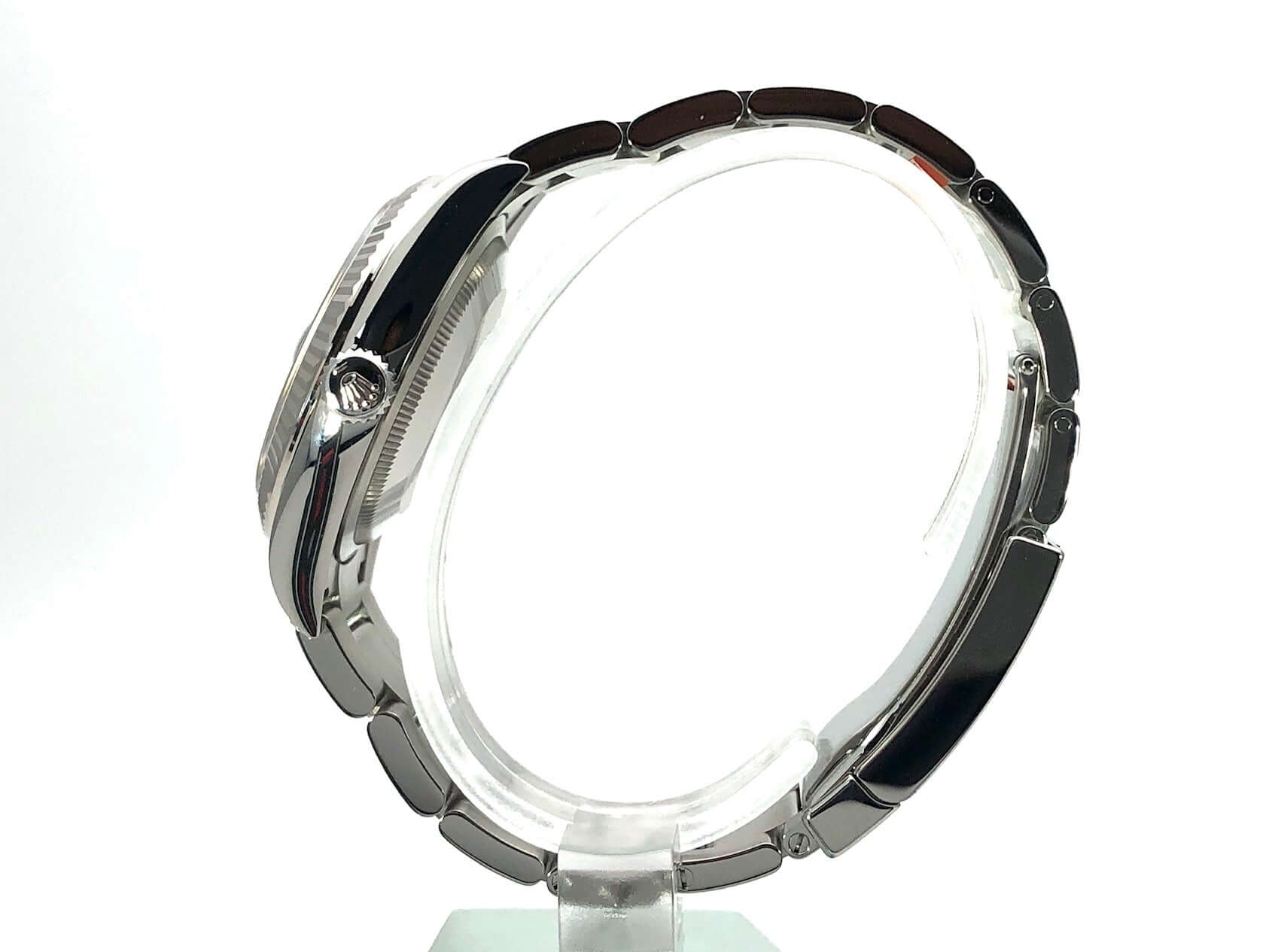 Gehäuse aus Edelstahl Oystersteel poliert und satiniert, Gehäusedurchmesser 36 mm, Lünette aus 18 kt Weißgold, blaues Zifferblatt mit 10 aufgesetzten Diamanten, Oyster Edelstahlband mit Faltschließe, Automatik, Rolex Manufakturkaliber 3235, 70 Stunden Gangreserve, Datumsanzeige, Chronometer, Saphirglas, verschraubte Krone, Edelstahlboden verschraubt, Wasserdicht bis 10 bar.