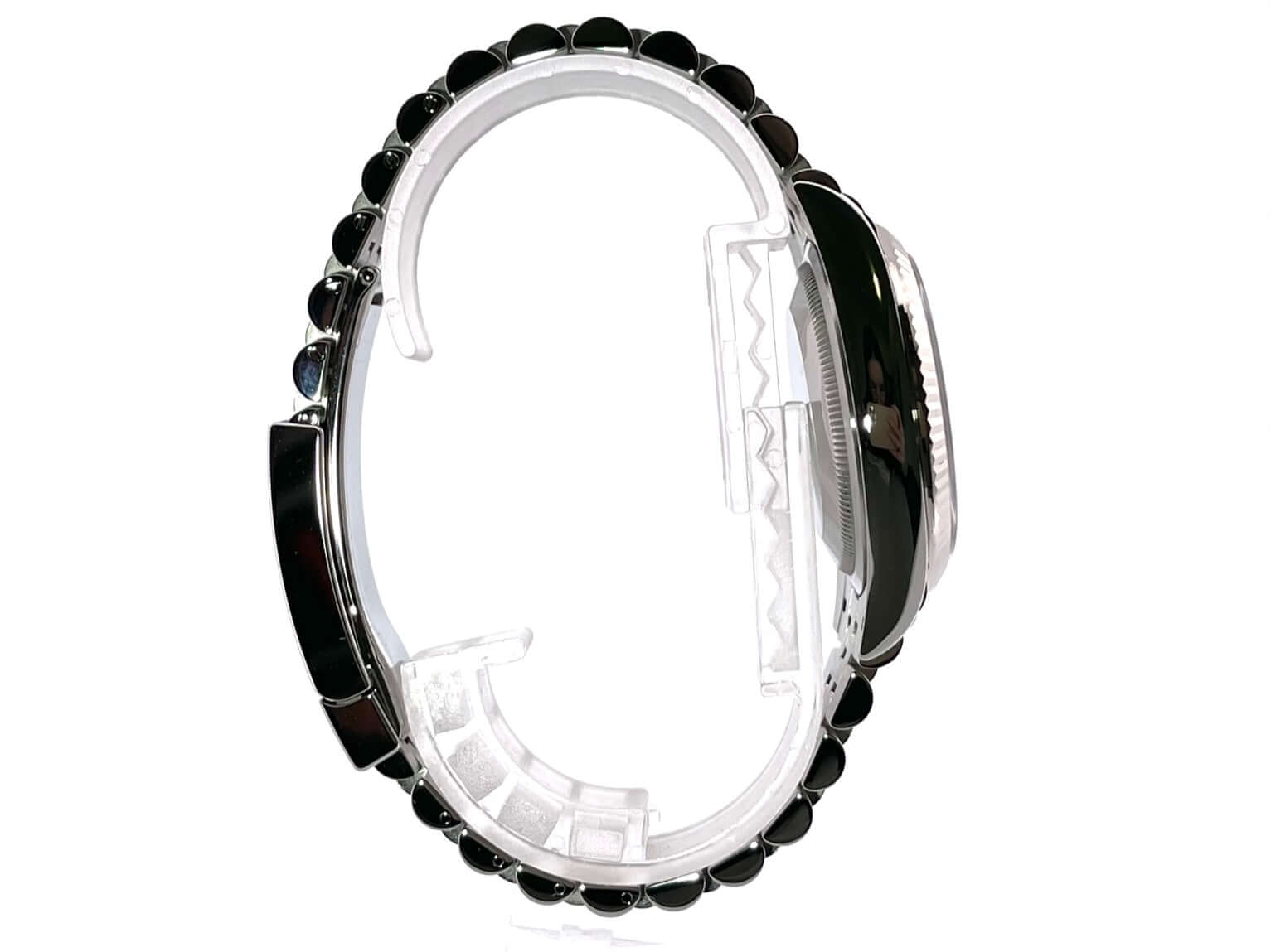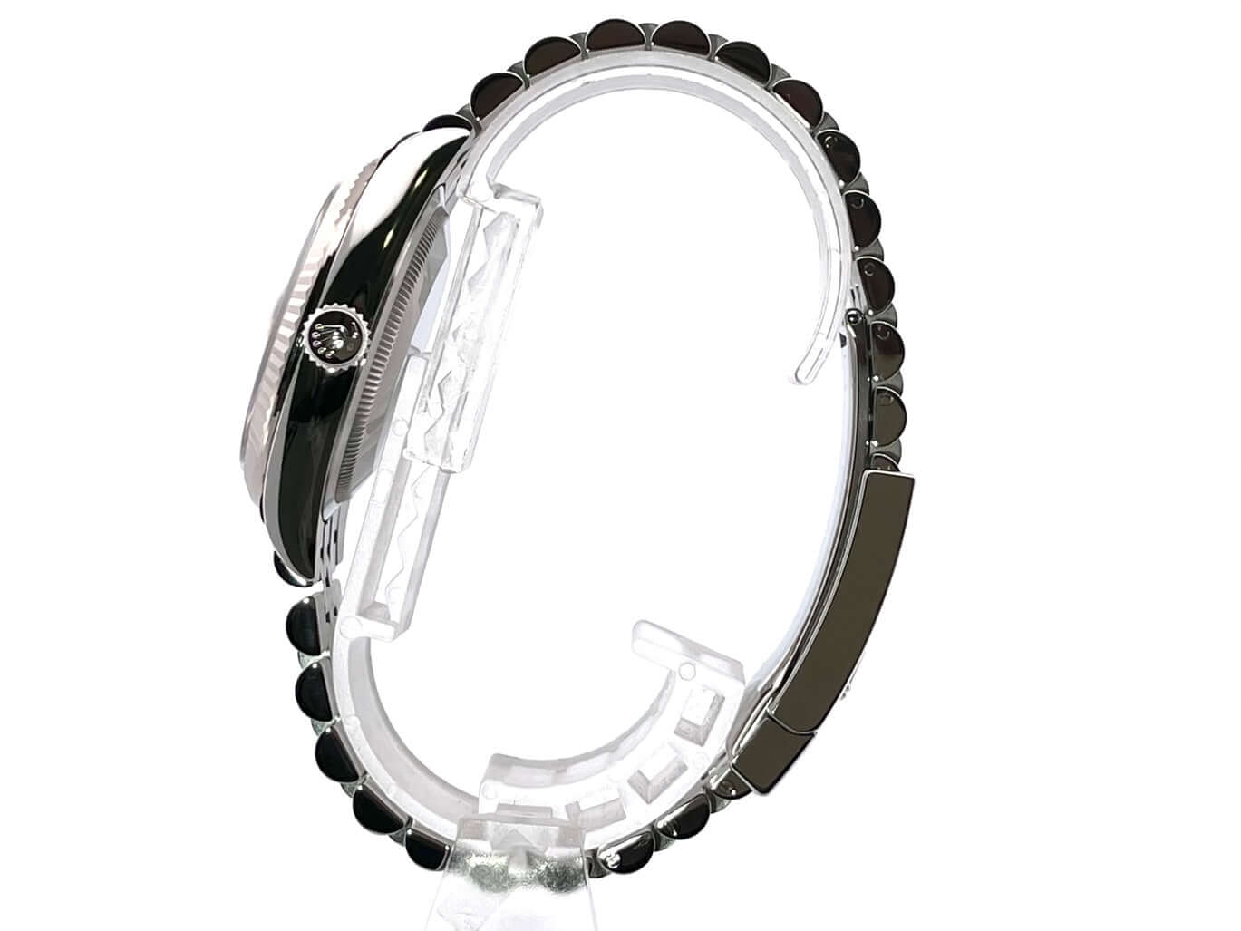 Gehäuse aus Edelstahl Oystersteel poliert und satiniert, Gehäusedurchmesser 36 mm, Lünette aus 18 kt Weißgold, Jubile-Edelstahlband mit Faltschließe, schwarzes Zifferblatt mit aufgesetzten Leuchtindizes, Leuchtzeiger, Automatik, Rolex Manufakturkaliber 3235, 70 Stunden Gangreserve, Datumsanzeige, Chronometer, Saphirglas, verschraubte Krone, Edelstahlboden verschraubt, wasserdicht bis 10 bar.