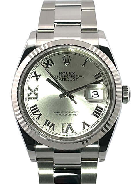 Rolex Datejust 36 Oystersteel Weißgold 126234 Silber Römisch Diamant