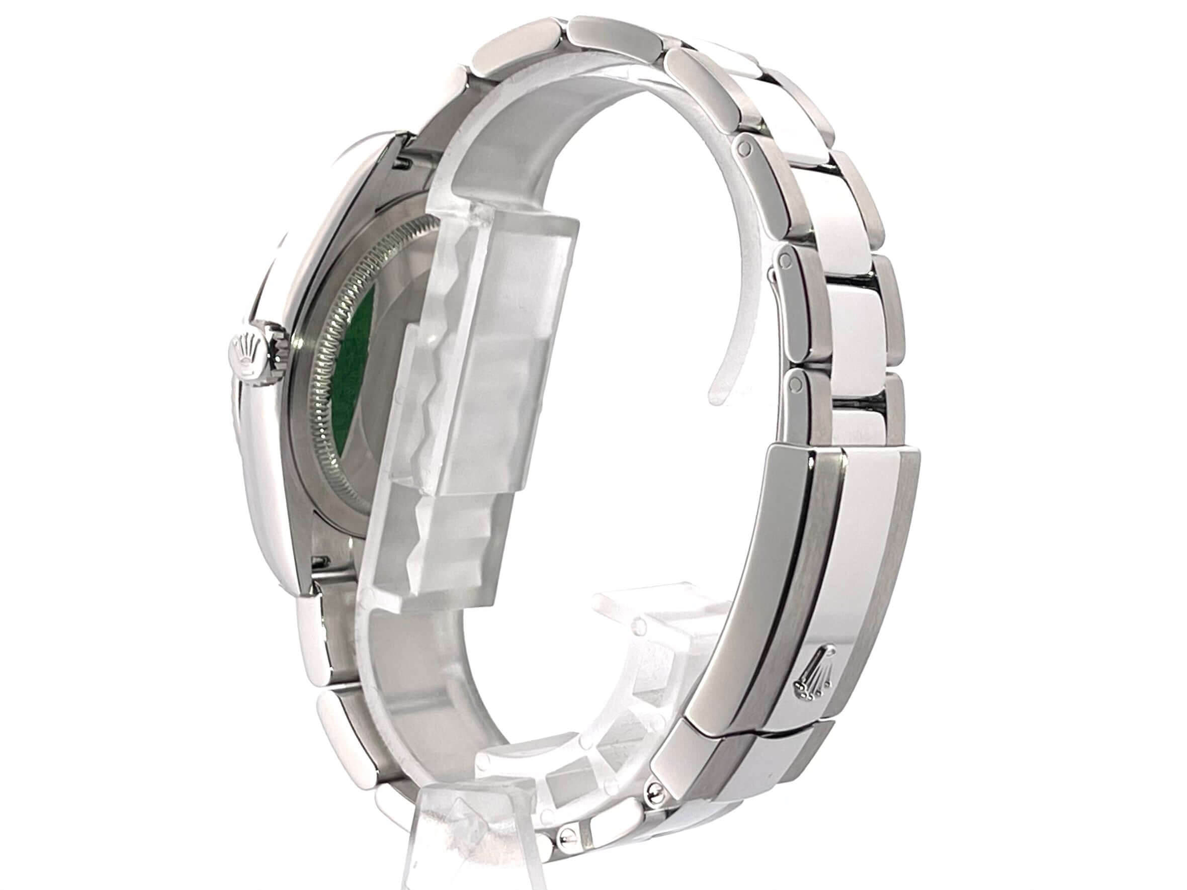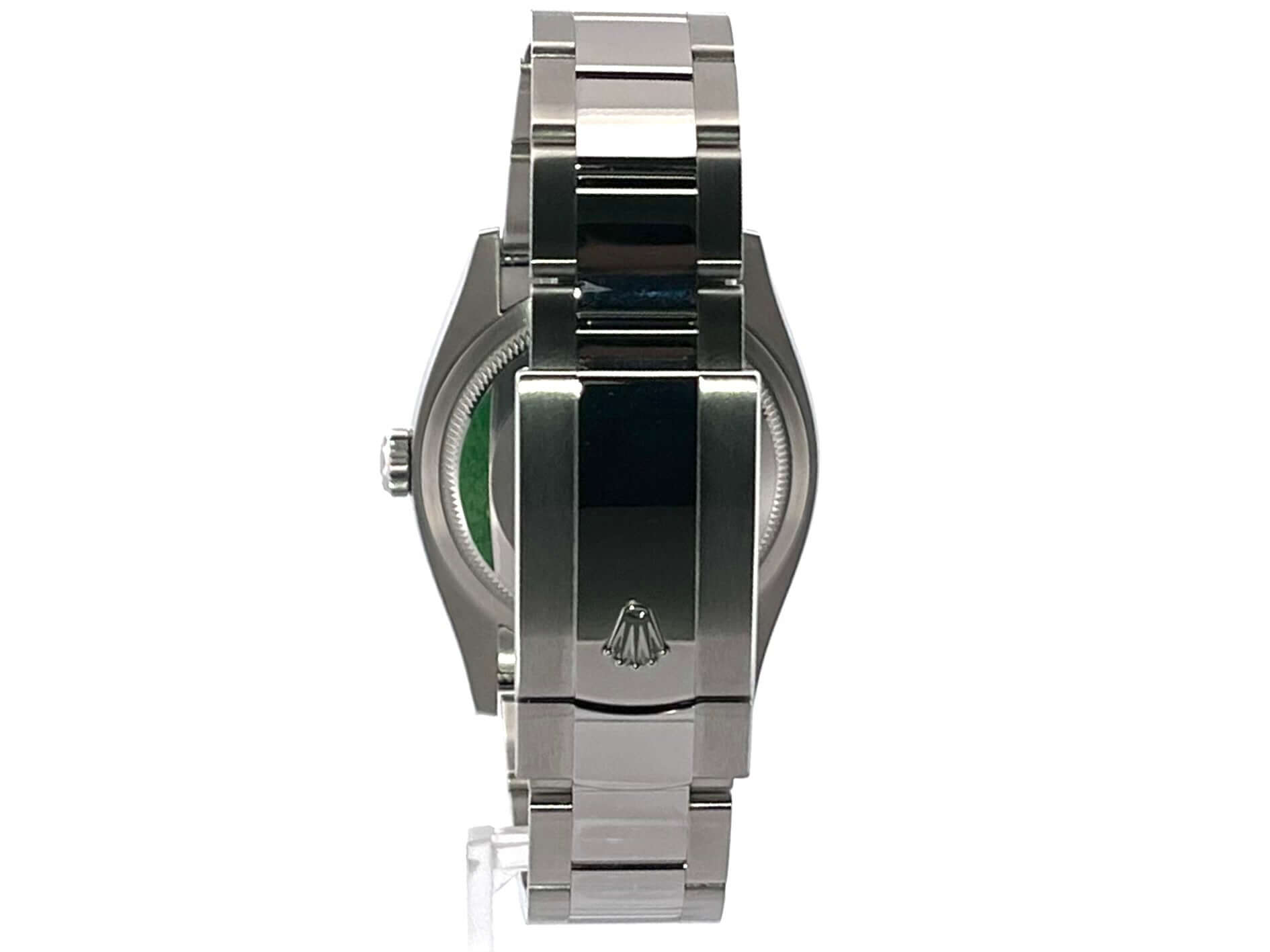 Gehäuse aus Edelstahl Oystersteel poliert und satiniert, Gehäusedurchmesser 36 mm, Lünette aus 18 kt Weißgold, Silberfarbenes Zifferblatt mit aufgesetzten römischen Ziffern, 24 Diamanten in der römischen VI und IX, Oyster-Edelstahlband mit Faltschließe, Automatik, Rolex Manufakturkaliber 3235, 70 Stunden Gangreserve, Datumsanzeige, Chronometer, Saphirglas, verschraubte Krone, Edelstahlboden verschraubt, Wasserdicht bis 10 bar.