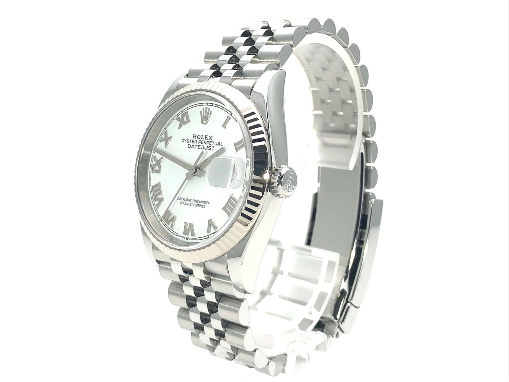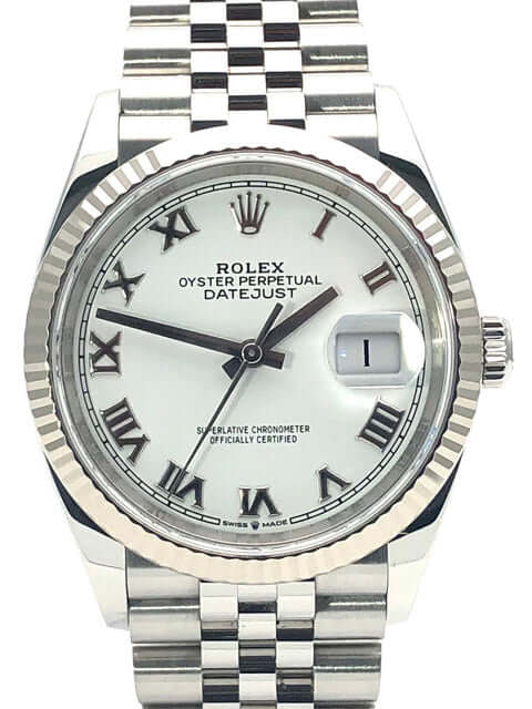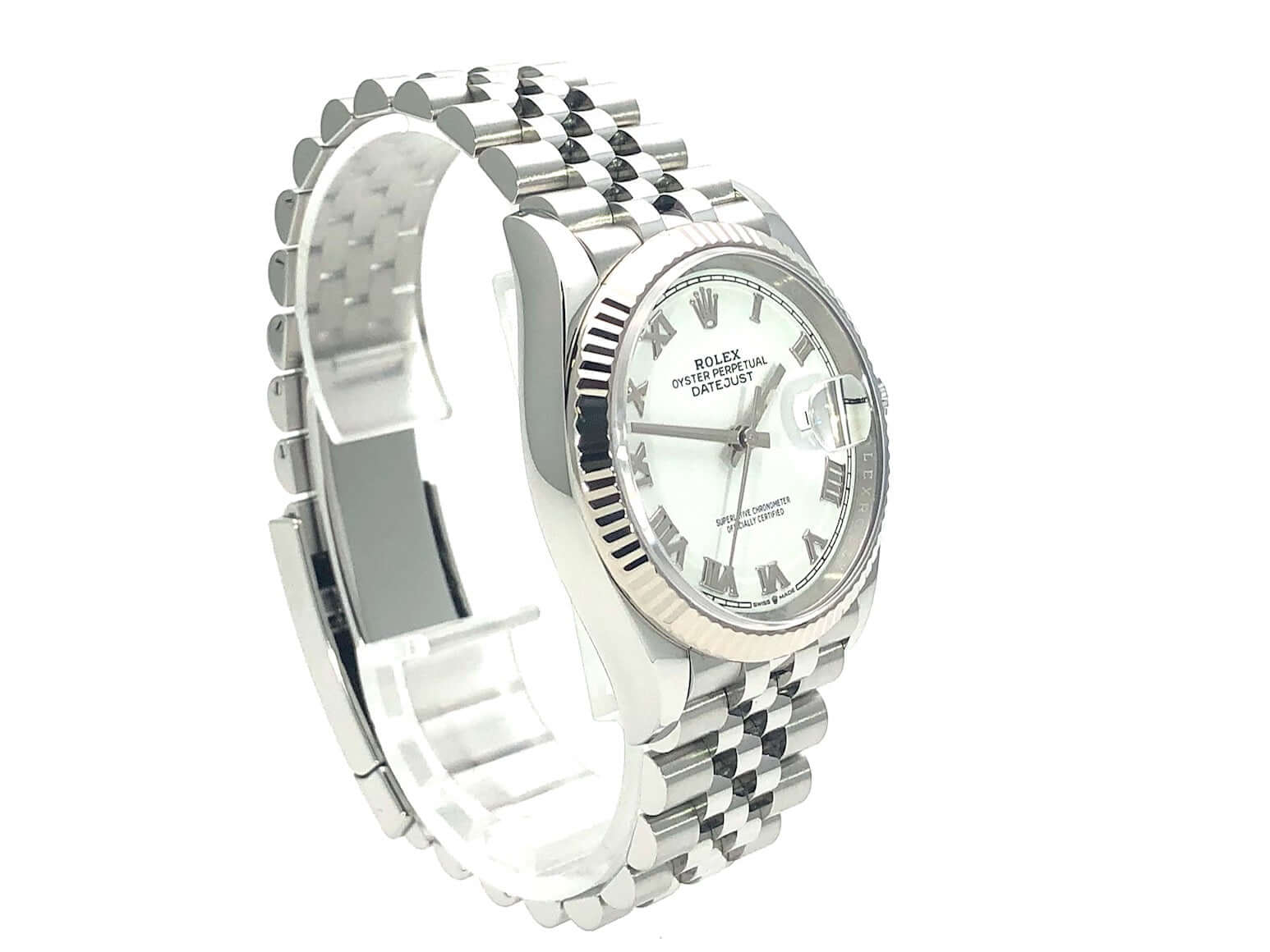 Rolex Datejust 36 Oystersteel / Weißgold Ref. 126234 Jubile-Band Weiß Römisch