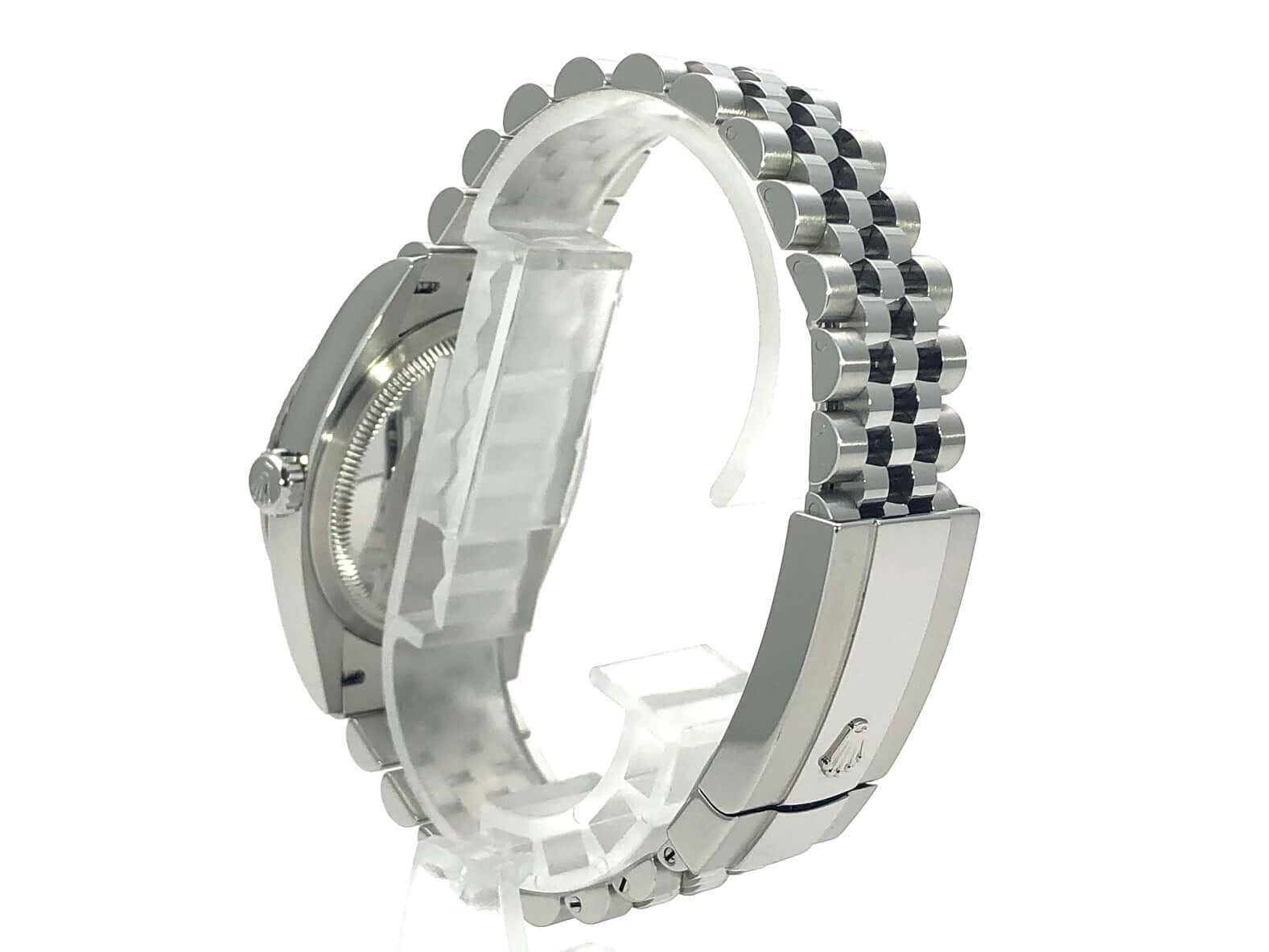 Gehäuse aus Edelstahl Oystersteel poliert und satiniert, Gehäusedurchmesser 36 mm, Lünette aus 18 kt Weißgold, weißes Zifferblatt mit aufgesetzten römischen Ziffern, Jubile-Edelstahlband mit Faltschließe, Automatik, Rolex Manufakturkaliber 3235, 70 Stunden Gangreserve, Datumsanzeige, Chronometer, Saphirglas, verschraubte Krone, Edelstahlboden verschraubt, Wasserdicht bis 10 bar.