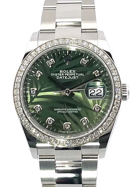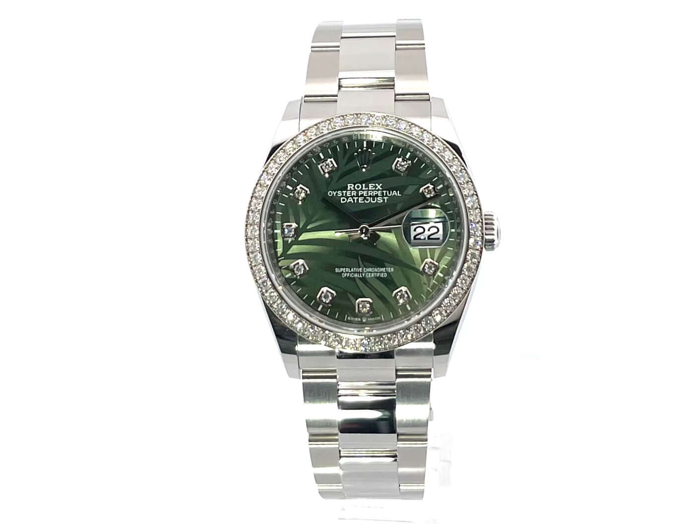 Rolex Datejust 36 Weißgold Diamant 126284RBR Oliv Palmenmuster