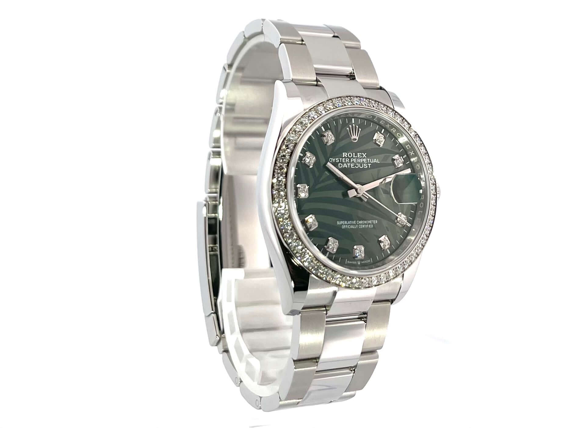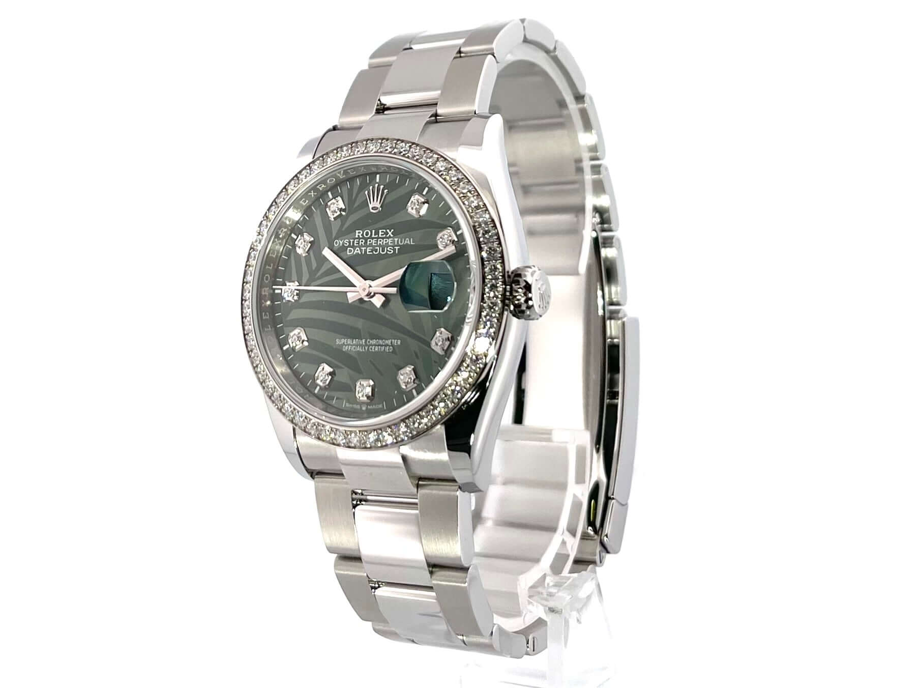 Rolex Datejust 36 Oystersteel / Weißgold mit Diamanten Ref. 126284RBR Oliv Palmenmuster
